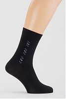 Демисезонный гладкий носок с двойным бортом и вышивкой на паголенке