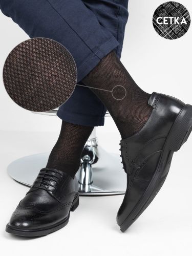 Мужские носки в сетку. Мягкая хлопковая основа создаёт ощущения лёгкости и комфорта, а добавление эластана усиливает устойчивость изделия к истиранию. Специально разработанная сетка обеспечивает дополнительную вентиляцию ног, потому модель идеально послужит для ежедневного использования в летний период.