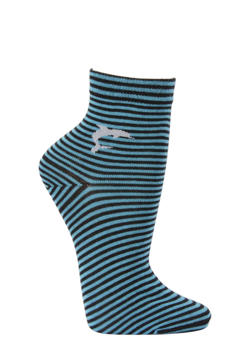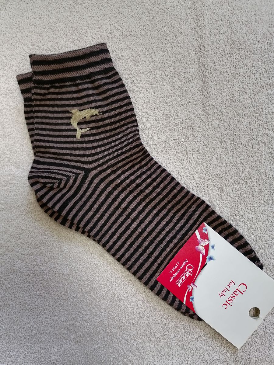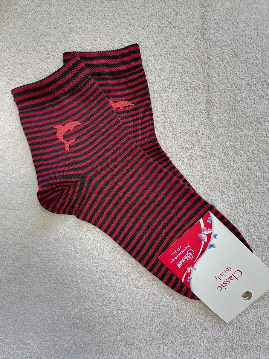 Женские демисезонные носки в полоску, на паголенке - изображение дельфина