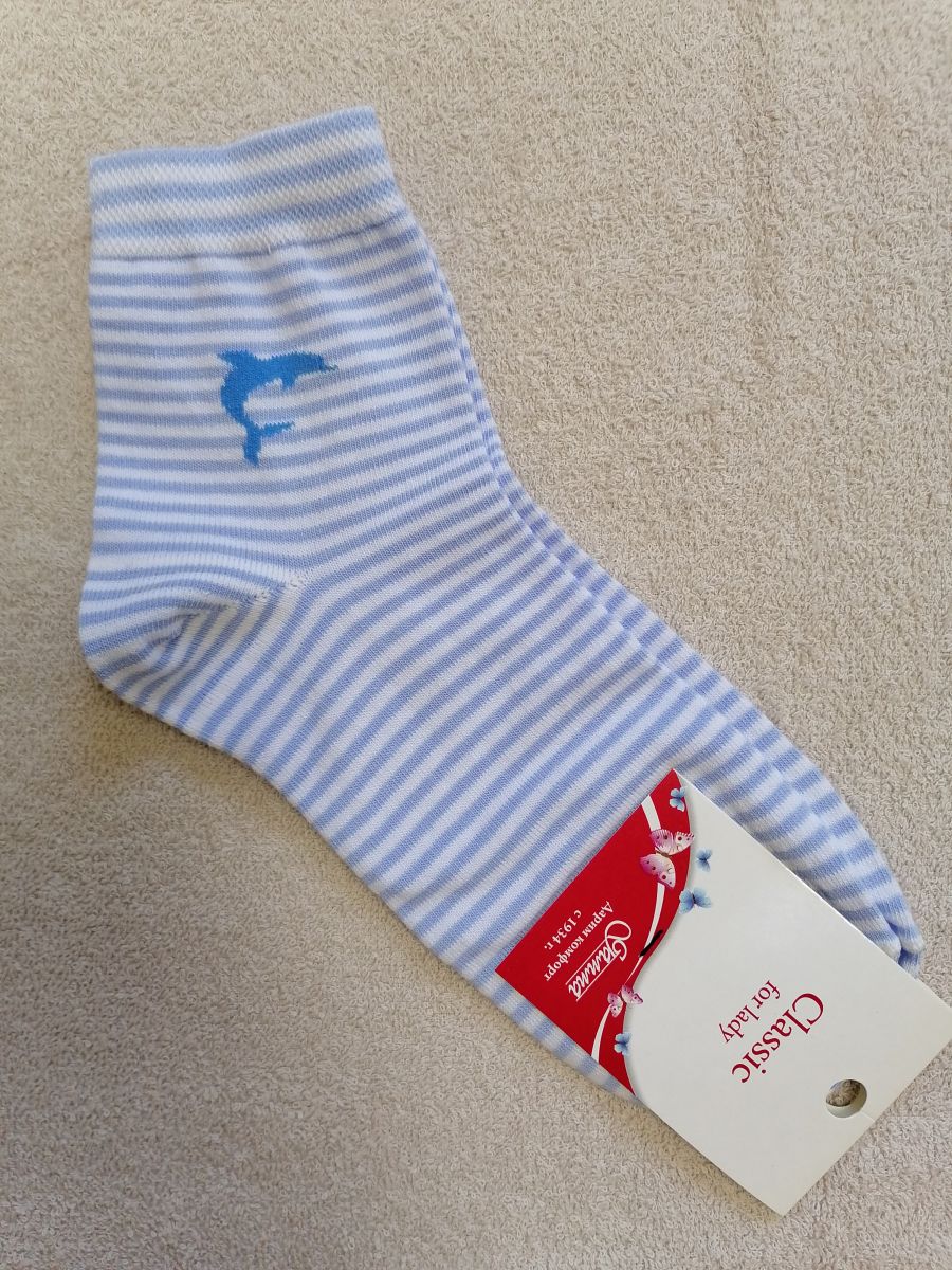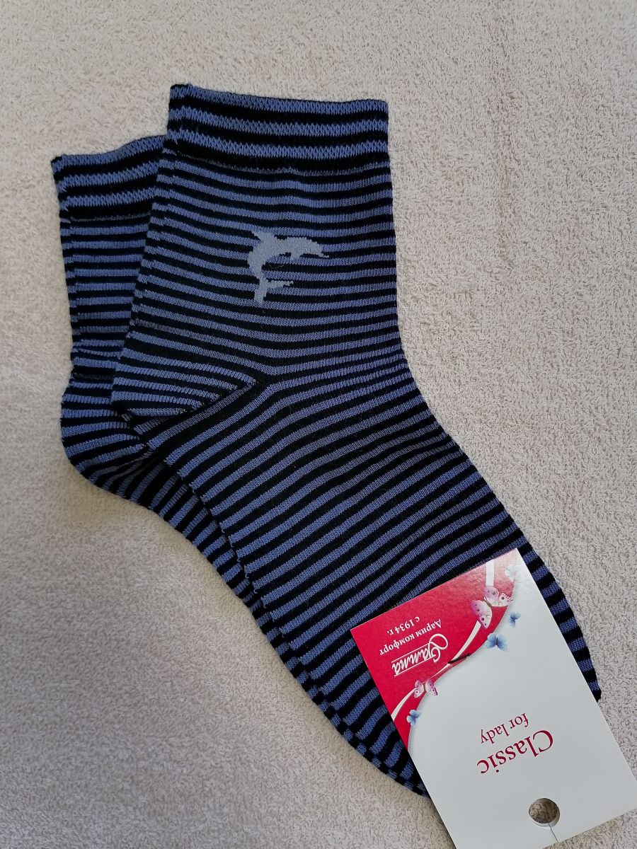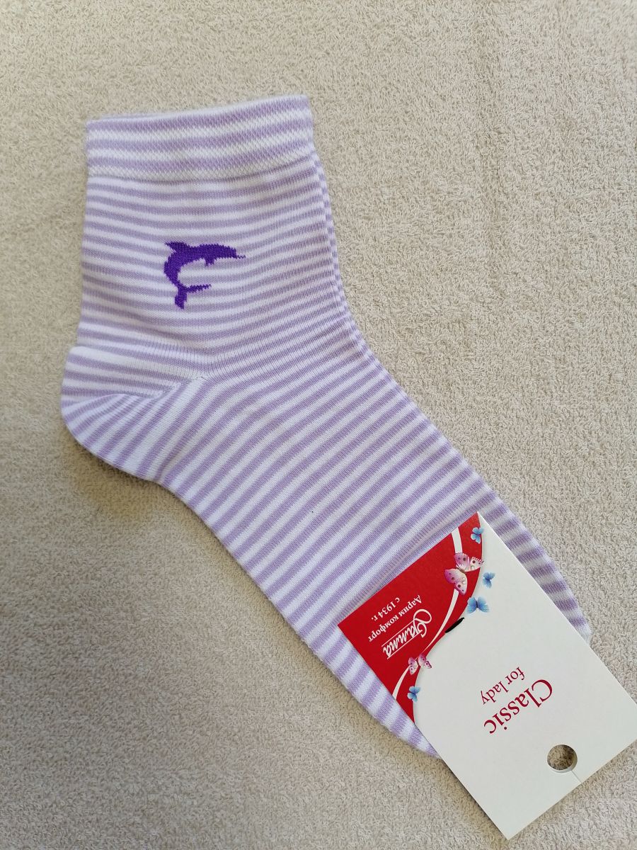 Женские демисезонные носки в полоску, на паголенке - изображение дельфина