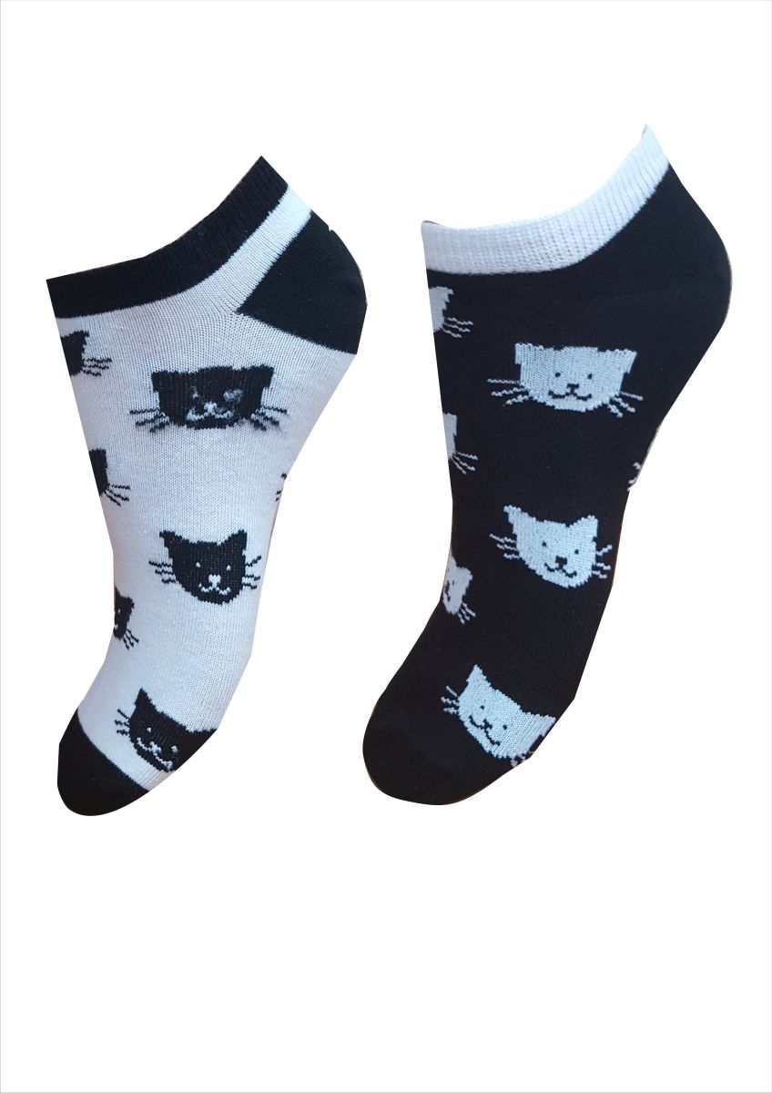 Носки женские демисезонные укороченные с кошачим рисунком, выпускаются в двух контрастных цветах: белый, черный