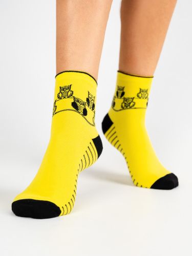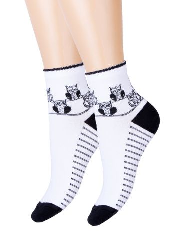 Женские носки с графичным рисунком милых сов. За счёт мягкой хлопковой основы материал обеспечивает воздухопроницаемость и отводит влагу, что делает изделие оптимальным вариантом для демисезона.