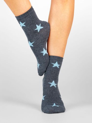 Женские носки с рисунком звёзд. Благодаря натуральной хлопковой основе изделие подарит ножкам ощущения мягкости и комфорта, обеспечивая отвод влаги и защищая кожу от раздражений.