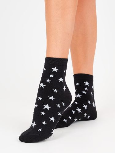 Женские носки со звёздами, изображенными по всей длине изделия. Мягкая хлопковая основа подарит ногам ощущения комфорта и лёгкости. Гармоничное сочетание насыщенного цвета основы и звёздного рисунка оживит любой наряд и непременно пленит все взгляды.