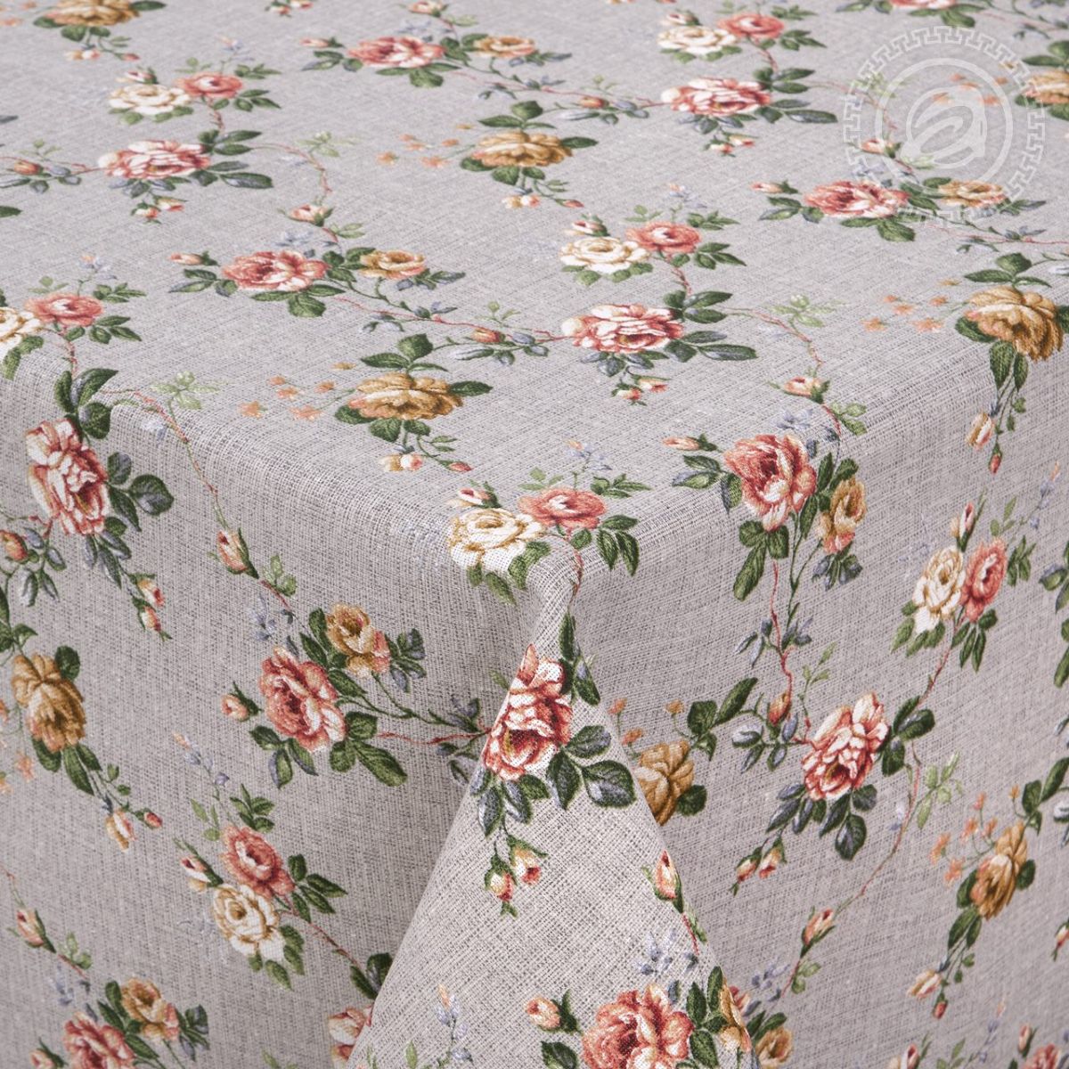 Скатерть «Ансамбль» из рогожки в теплой льняной расцветке дополнена элегантной цветочной композицией в стиле шебби-шик. Чудесные бутоны с нежными лепестками обрамлены зелеными листиками. Благодаря повторяющимся мотивам, рисунок с цветами выглядит объемным, воздушным и лаконичным.