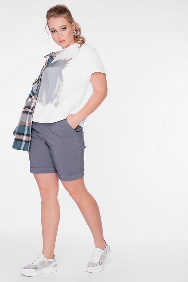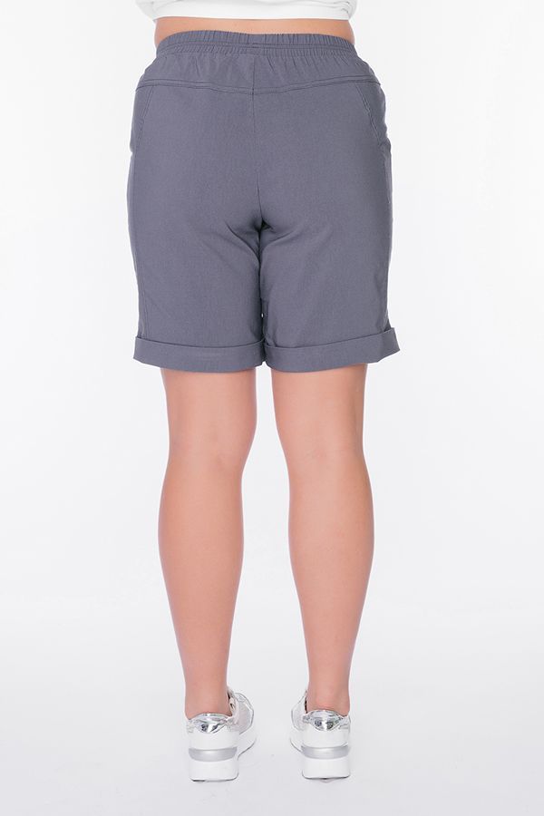 Модель шорт в спортивном стиле без застежки (пояс на резине). Детали: спереди вертикальный рельеф, боковые карманы (отделка - двойная строчка), сзади фигурная кокетка. По низу манжеты.