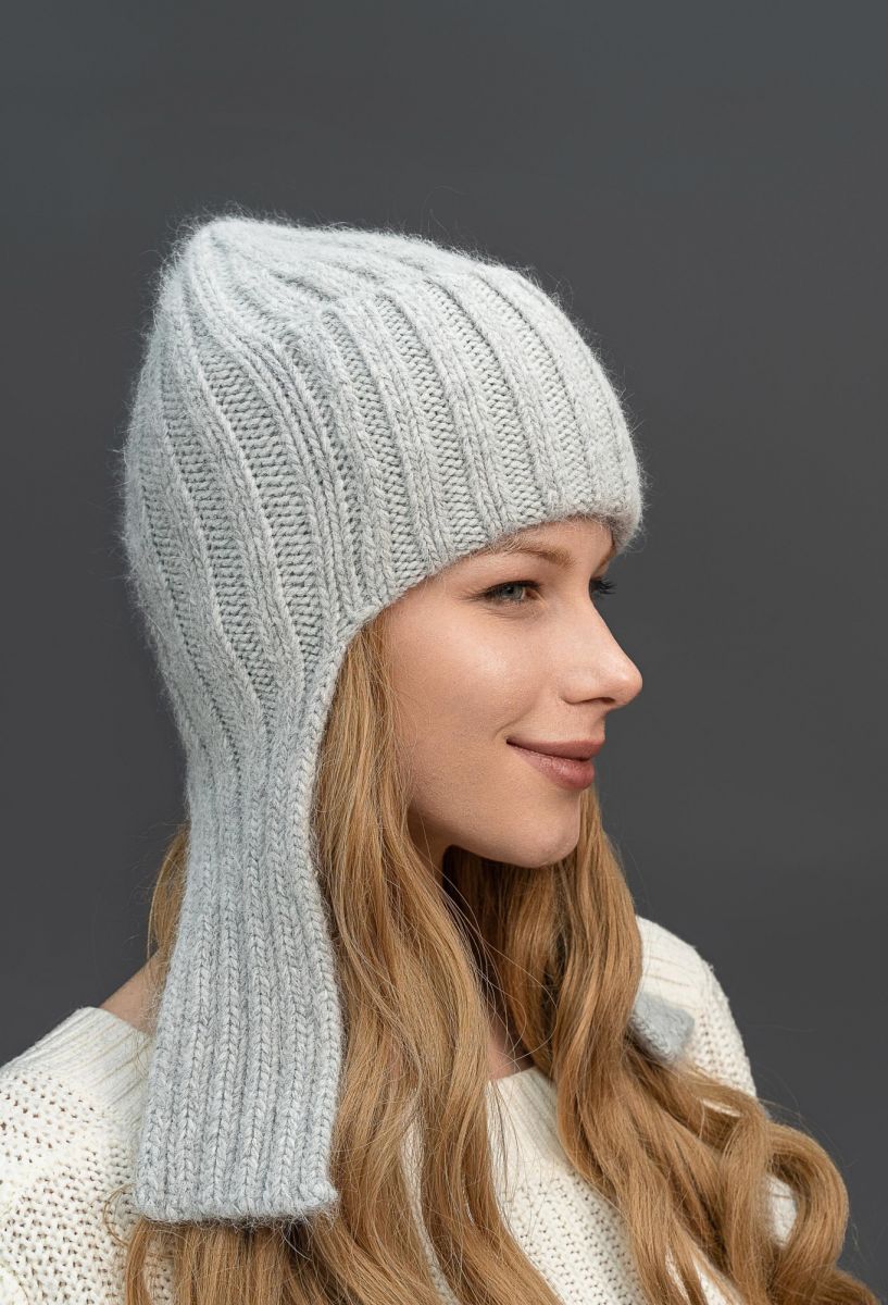 Связана из 60%-ой пушистой ангоры в 1 слой крупной вязкой 2х2. Высокий отворот, ушки прямоугольной формы. Утеплена цельной противоаллергеной флисовой подкладой. Подходит для женщин и детей от 7 лет.