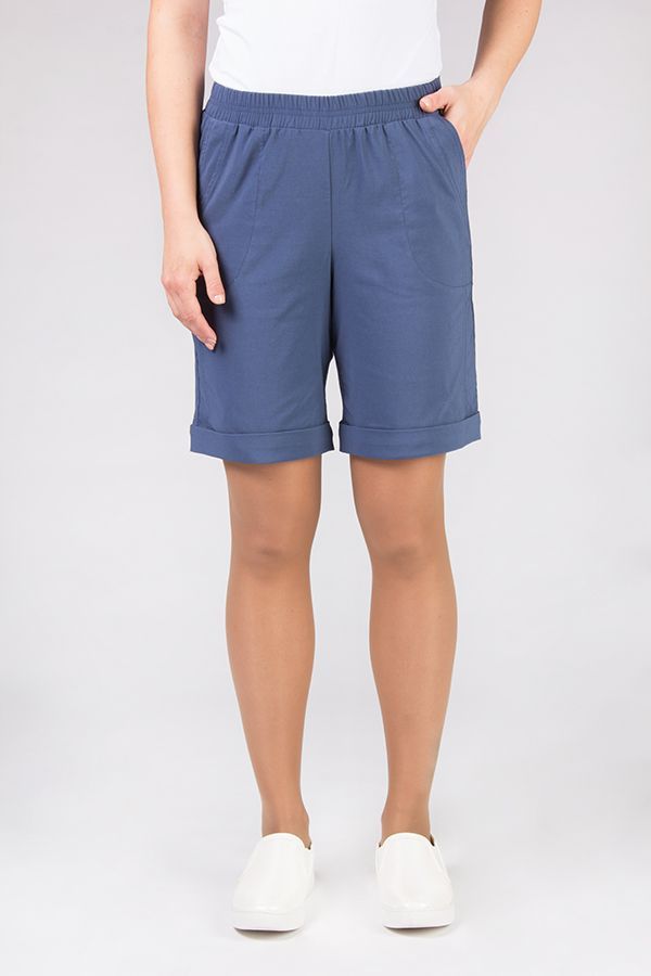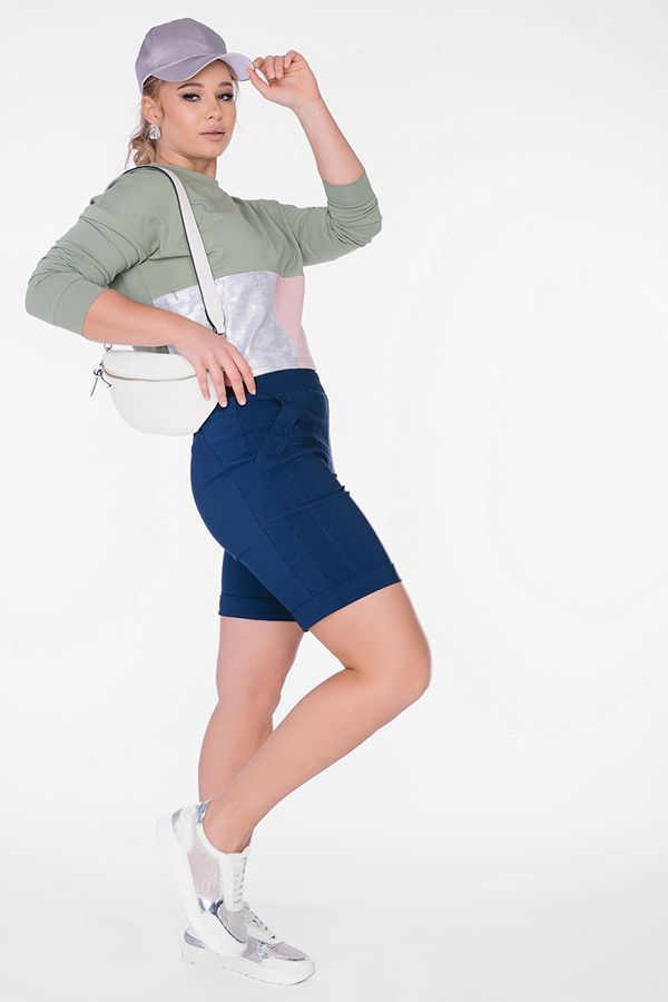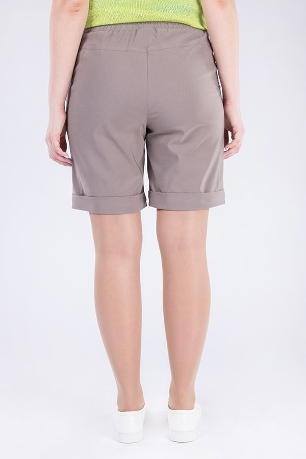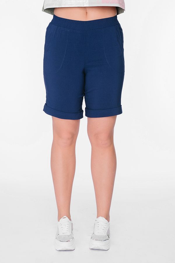 Модель шорт в спортивном стиле без застежки (пояс на резине). Детали: спереди вертикальный рельеф, боковые карманы (отделка - двойная строчка), сзади фигурная кокетка. По низу манжеты.