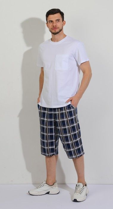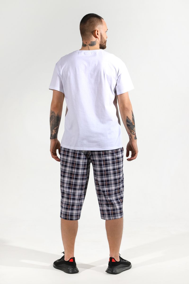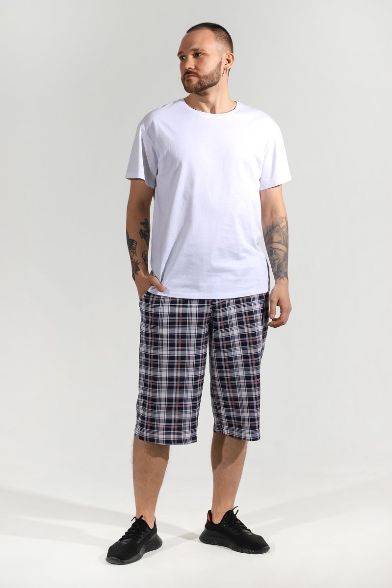 Мужские удлиненные шорты (бриджи) в клетку. Модель на притачном поясе с отстроченной с эластичной тесьмой, с боковыми карманами.