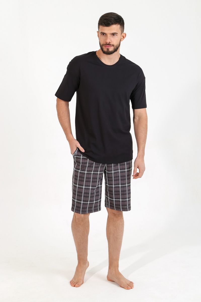 Базовые мужские шорты из кулирки с набивным рисунком. Модель с боковыми карманами, на притачном поясе с отстроченной эластичной тесьмой.