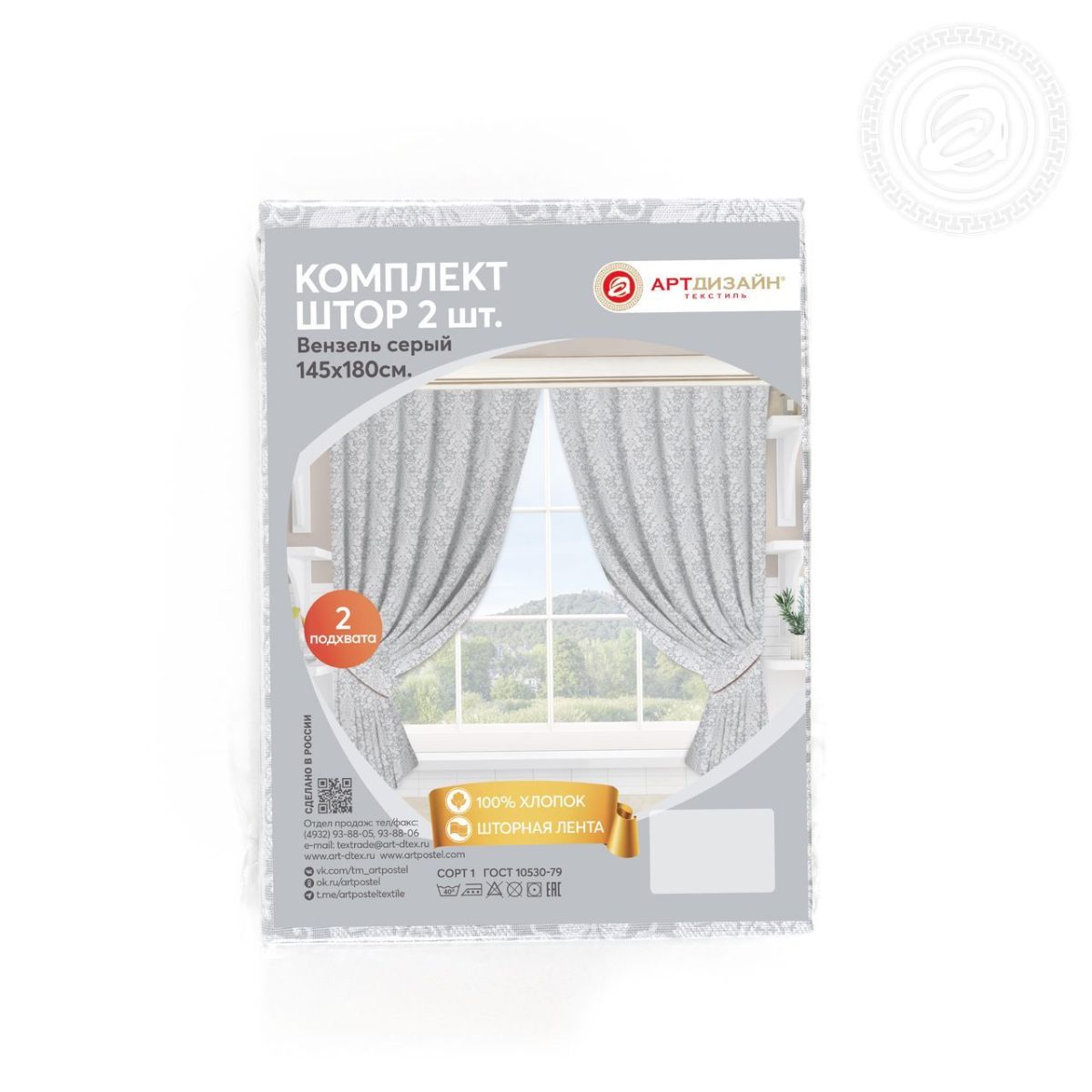 В комплект входят 2 шторы со шторной лентой в модных расцветках и 2 подхвата, которые позволяют удобно и красиво зафиксировать шторы на окнах.