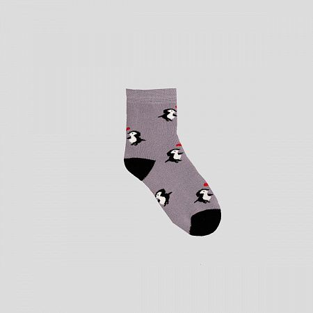 Дизайн: Серый цвет с милым рисунком пингвинов, украшенных красными шапками.
