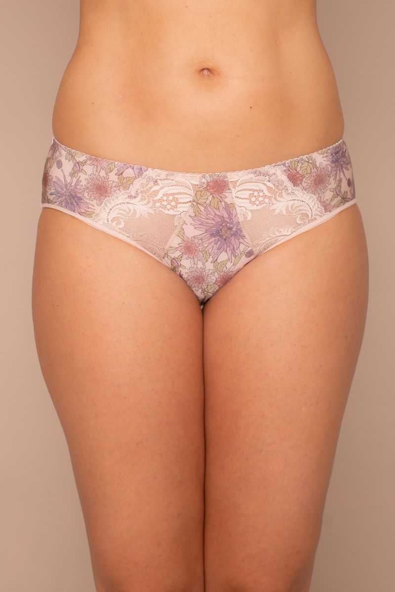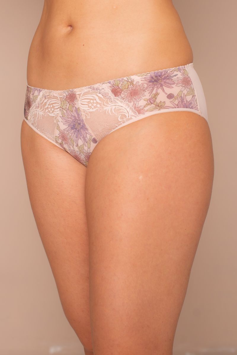 Трусы из эластичного принтованного полотна и эластичного кружева. Средняя посадка. Комплектуются к моделям Б 296-115 MAXI, Б 296-115, Б 297-115, Б 426-115, Б 923-115 Медовая хризантема.