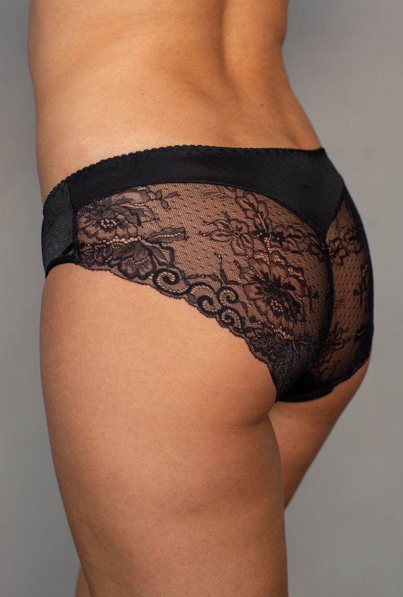 Трусы-слип из эластичного полотна с кружевными деталями сзади.