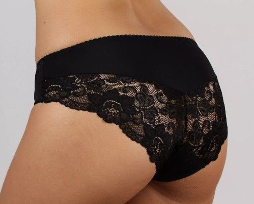 Трусы-слип из эластичного полотна с кружевными деталями сзади.