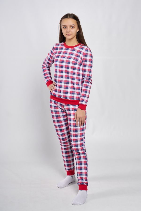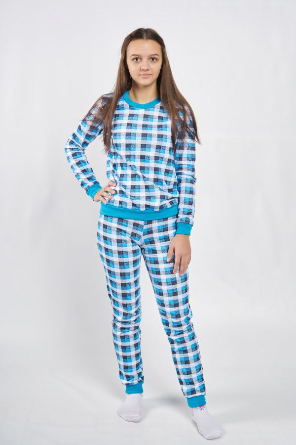 Теплый комплект для дома состоит из джемпера с длинными рукавами и брюк.