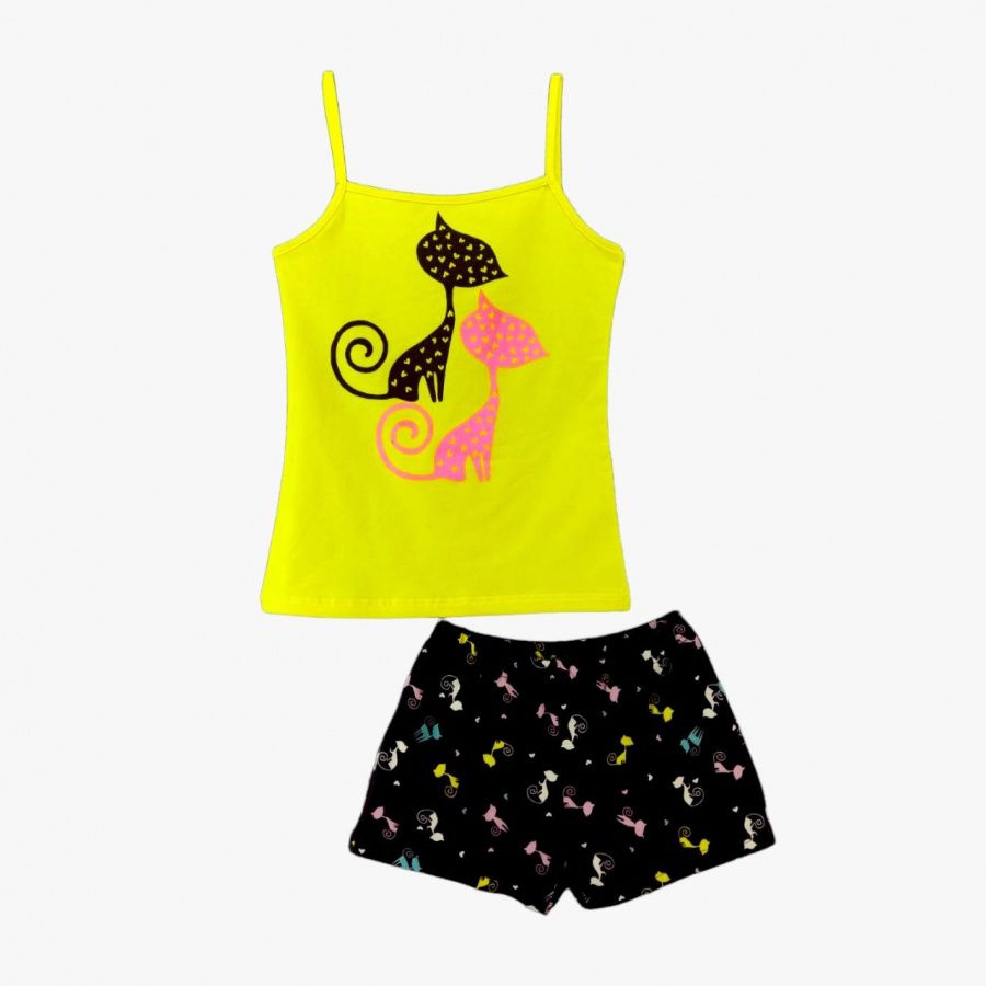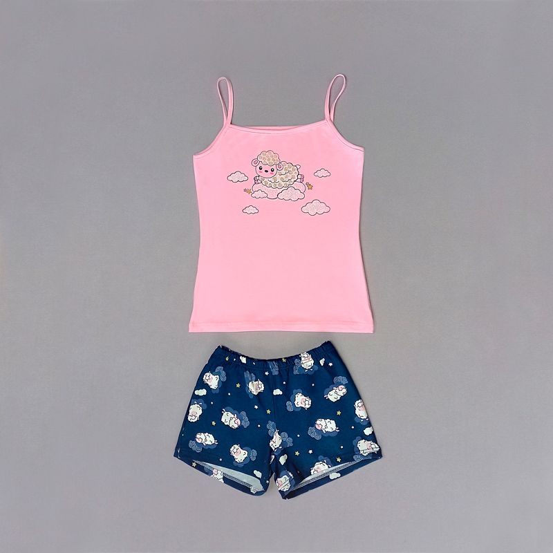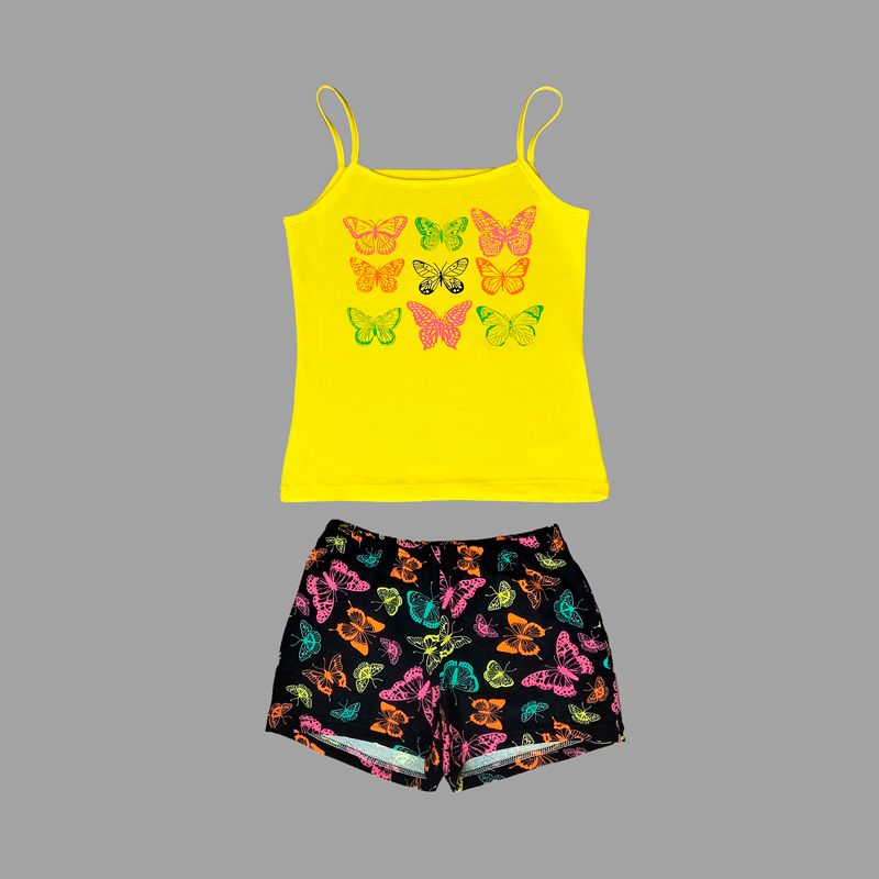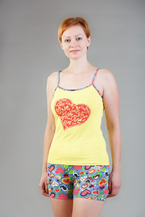 Комплект для дома состоит из майки - топа и коротких облегающих шорт