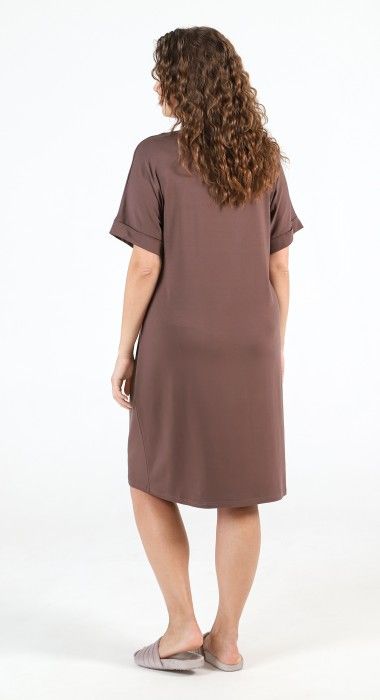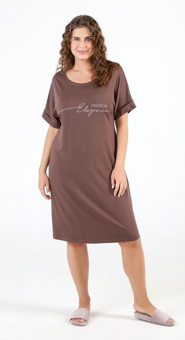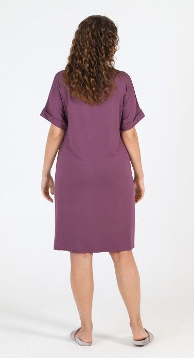 Туника из гладкокрашеного вискозного полотна свободного покроя, прямого силуэта с короткими цельнокроеными рукавами, горловиной овальной формы и принтом на полочке, выполненным в технике шелкографии. Рукава – с притачными манжетами-отворотами.