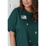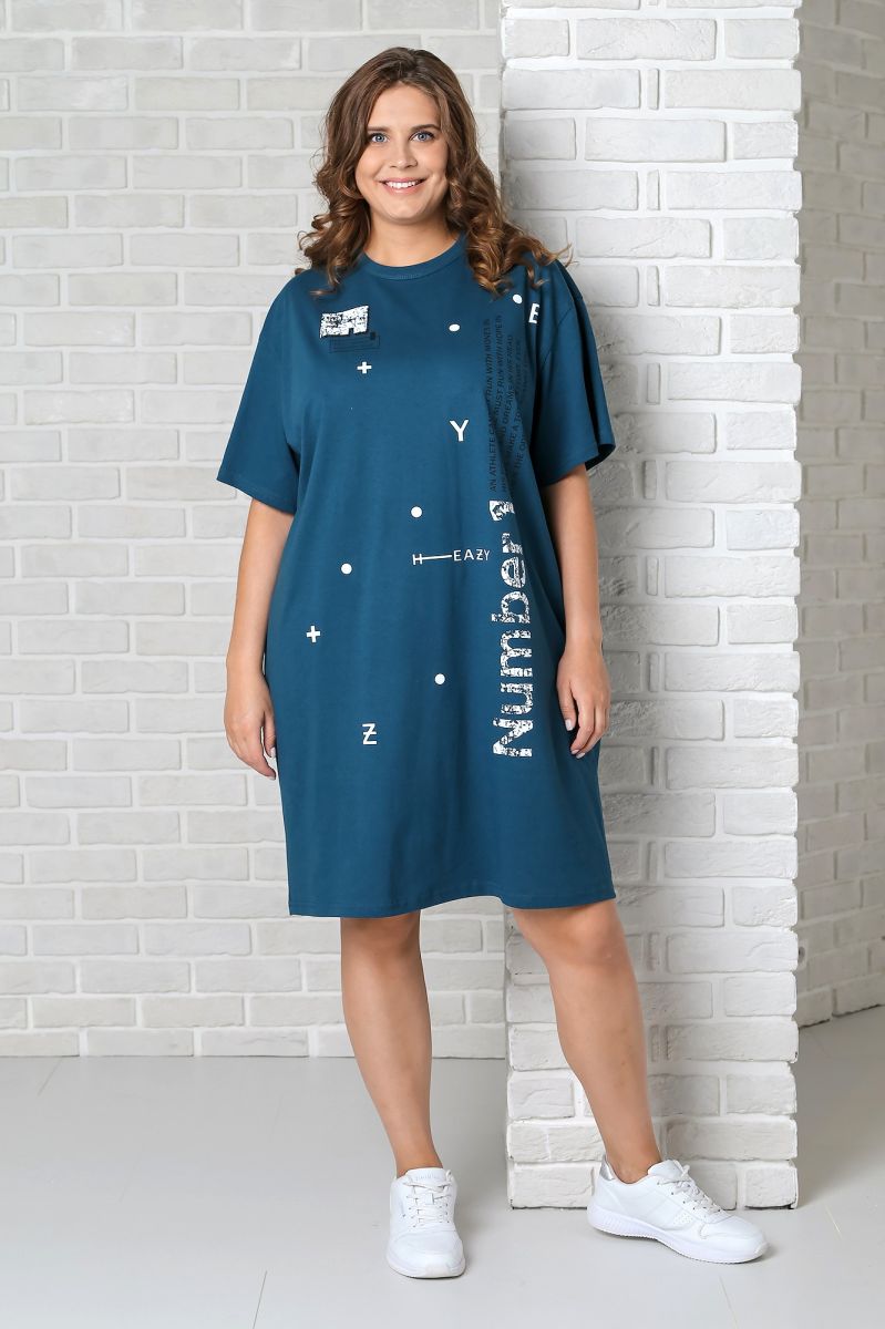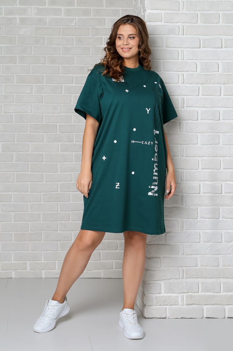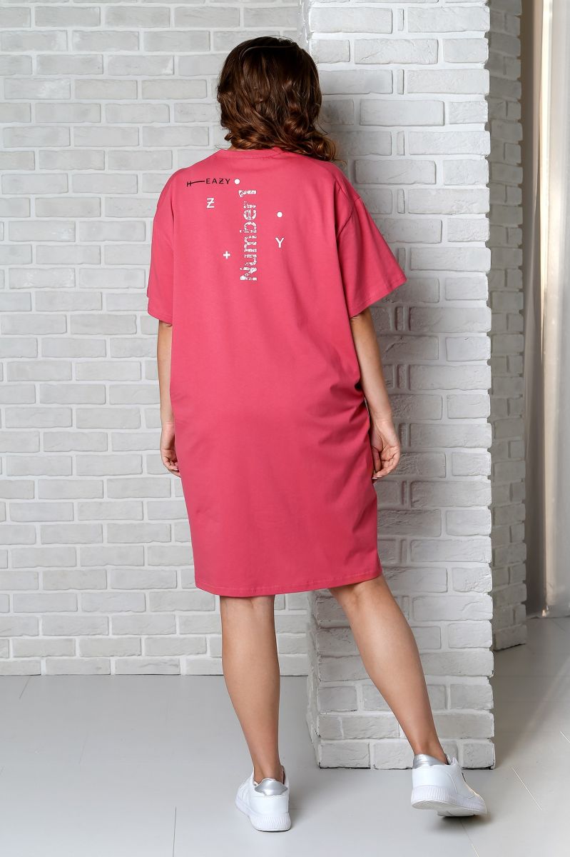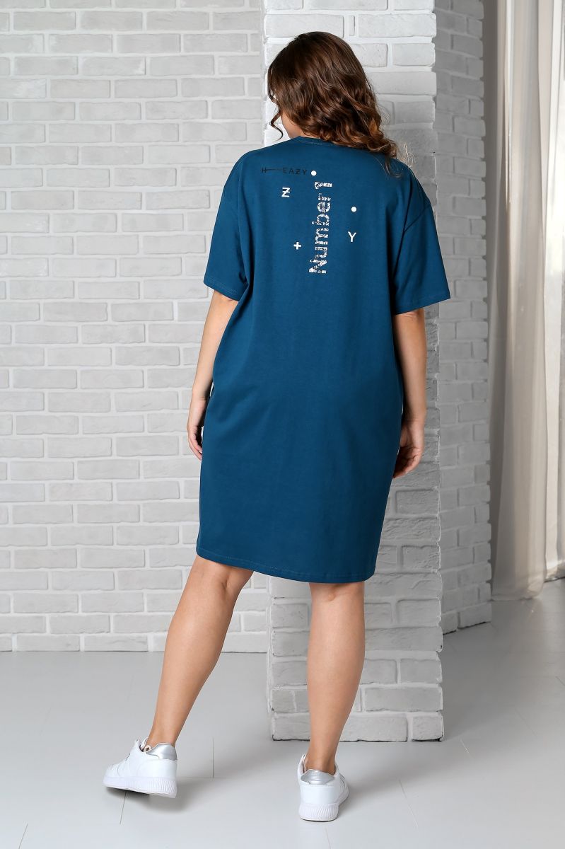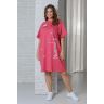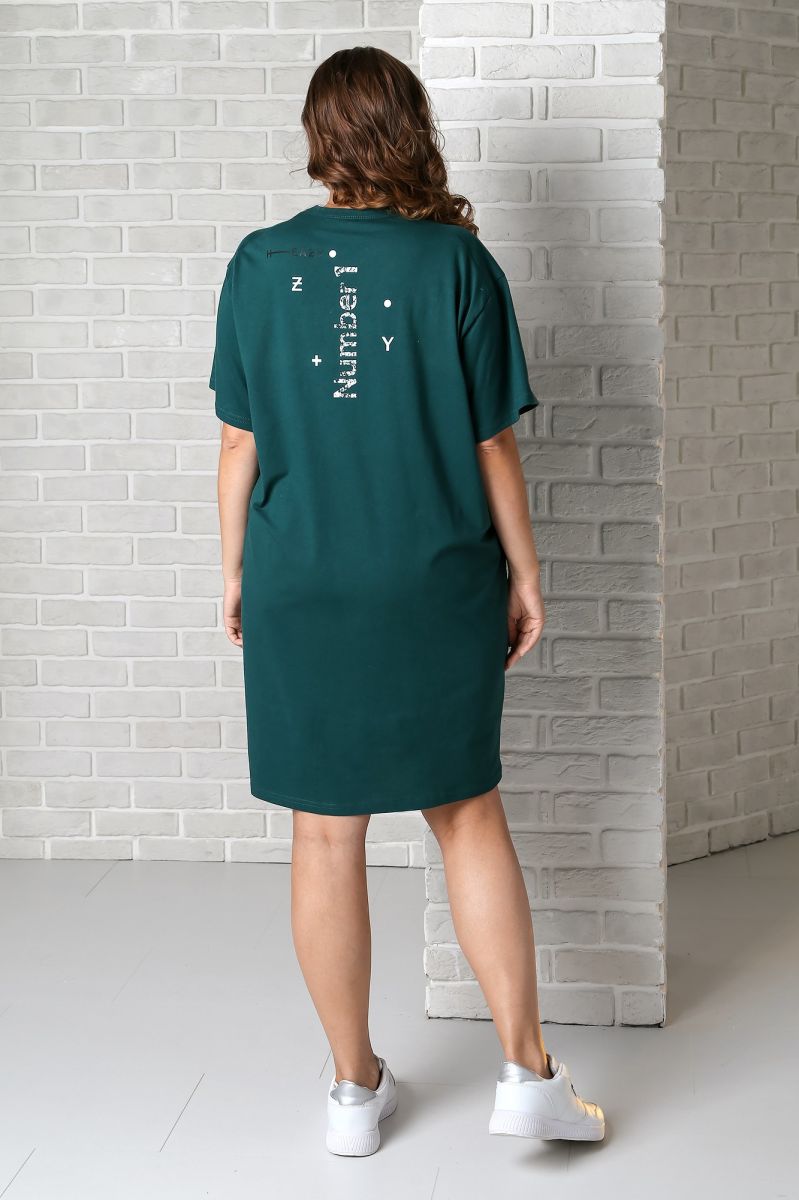Из гладкокрашеного трикотажного полотна «кулирка», свободного покроя, прямого силуэта, с короткими втачными рукавами, горловиной овальной формы, окантованной основным материалом и принтами в центре переда и на спинке.