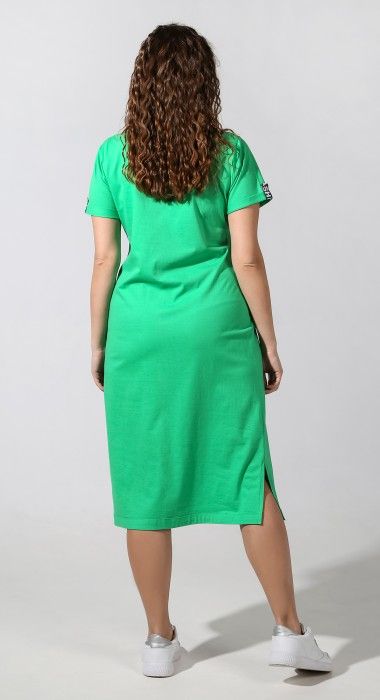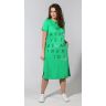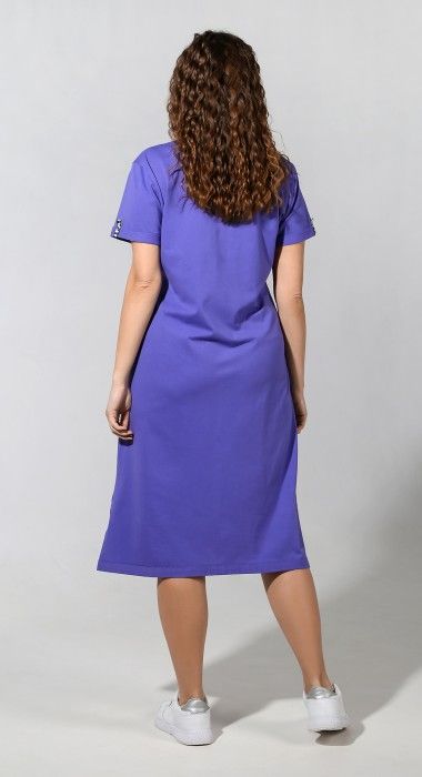 Туника из трикотажного гладкокрашеного полотна «кулирка», прямого силуэта, с короткими втачными рукавами, горловиной овальной формы, карманами и разрезами в боковых швах и принтом на полочке, выполненным в технике шелкографии. Горловина и входы в карманы окантованы основным материалом