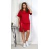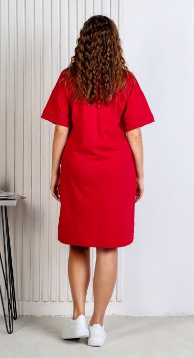 Туника женская из гладкокрашеного трикотажного полотна «кулирка», прямого силуэта с короткими рукавами на основе цельнокроеных и горловиной овальной формы, обработанной притачной бейкой. Полочка – разрезная с левой стороны, с разрезом в шве и принтом в технике шелкографии на отрезной детали. Нижние срезы рукавов обработаны притачными манжетами-отворотами.