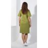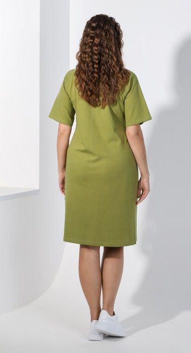 Туника женская из гладкокрашеного трикотажного полотна «кулирка», прямого силуэта, с рукавами покроя «реглан» длиной до локтя, горловиной овальной формы, окантованной основным материалом, карманами в боковых швах и принтом на полочке, выполненном в технике шелкографии.
