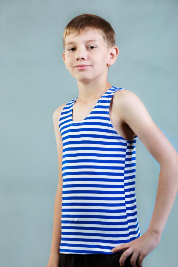 Майка для мальчика. Горловина, проймы и низ распошиты.
