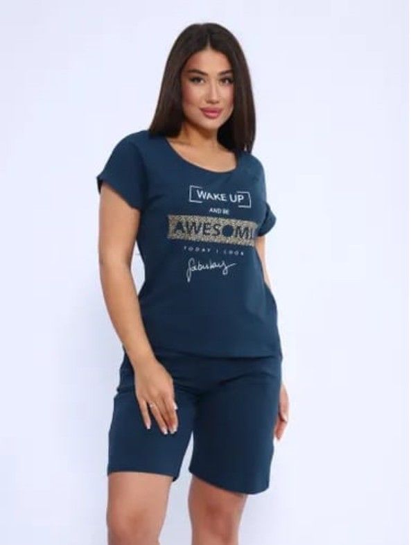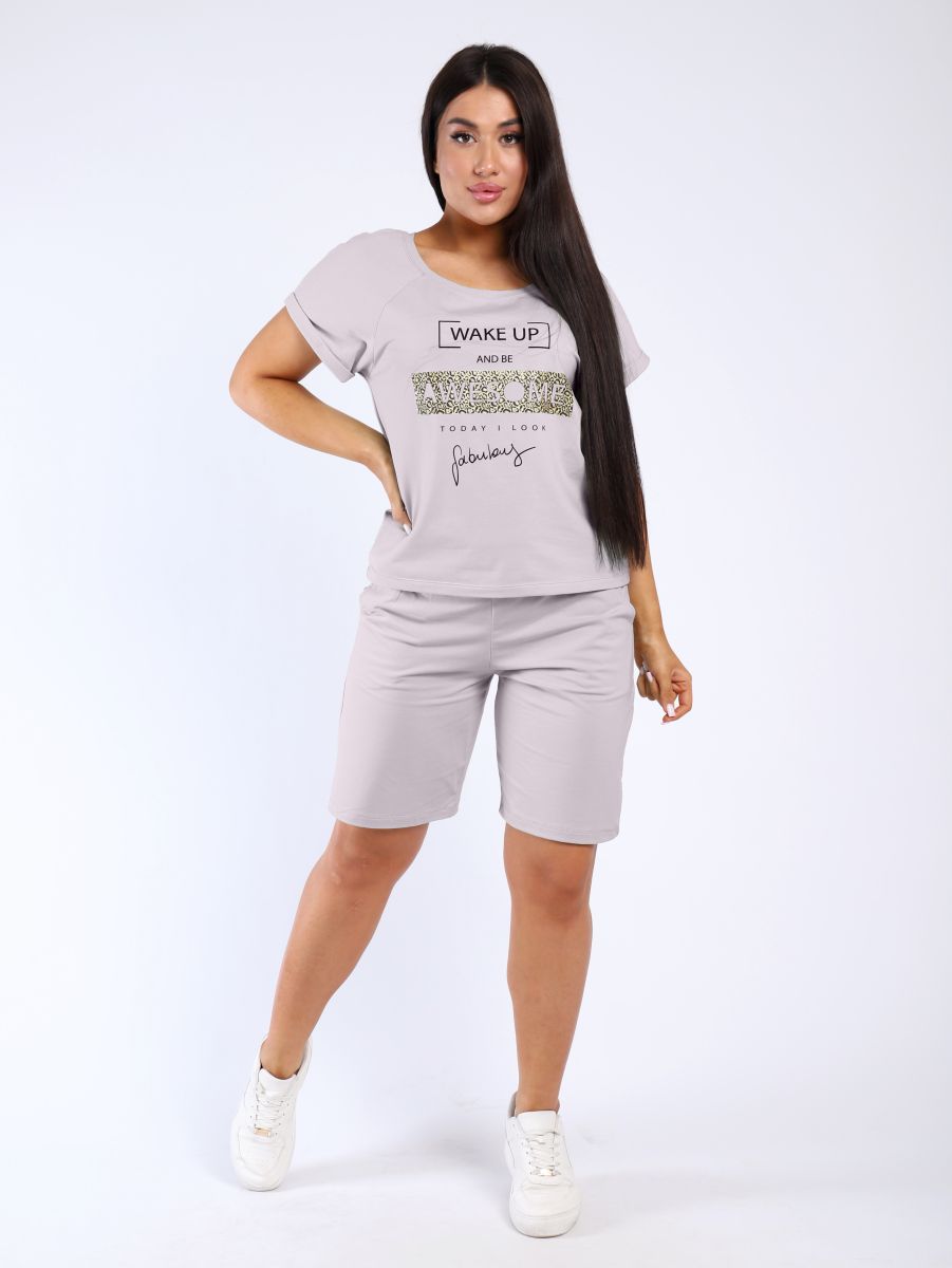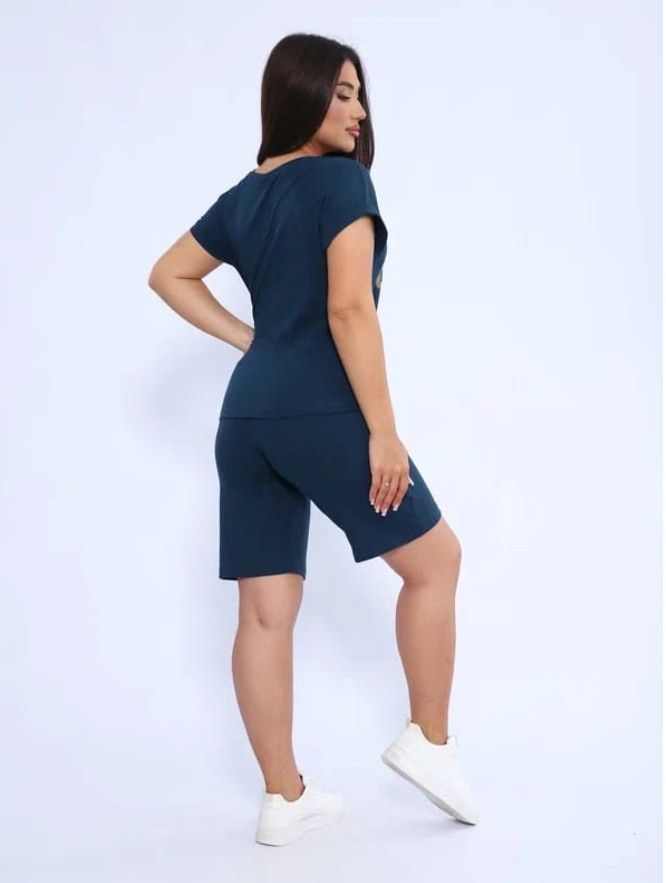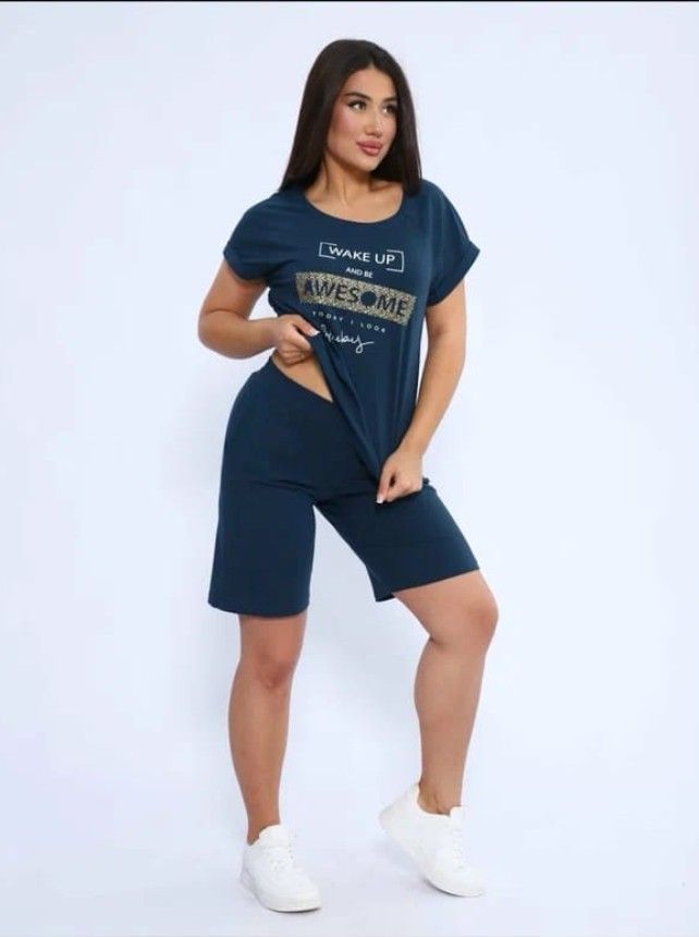 Удобный спортивный женский костюм с шортами больших размеров из качественного хлопка, подходит так же для повседневной носки. Иметь такой трикотажный женский костюм у себя в гардеробе просто необходимо для женщины. Костюм отлично подойдет для прогулок, для активного отдыха, походов за покупками, да и просто для дома или в качестве пижамы.