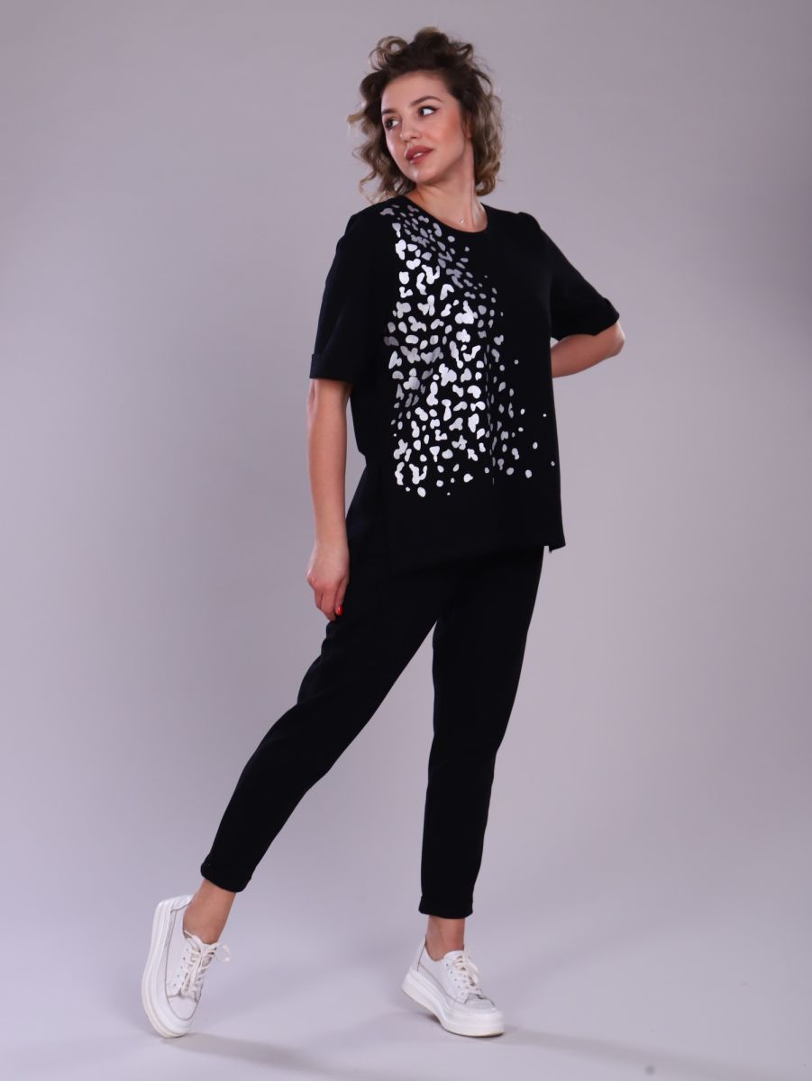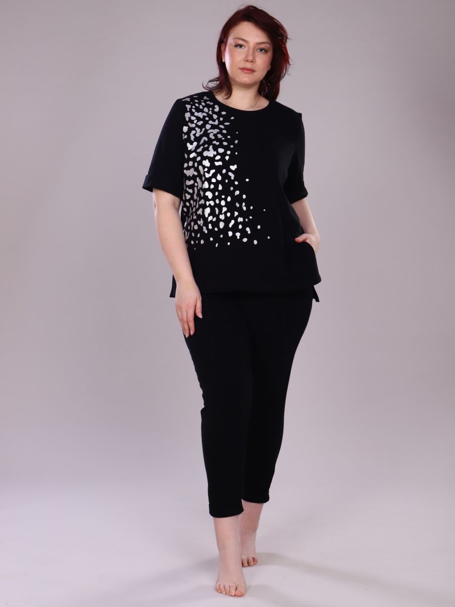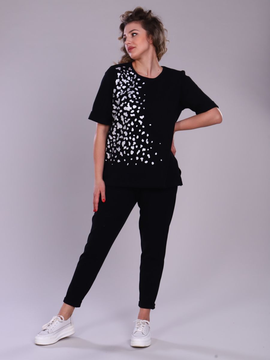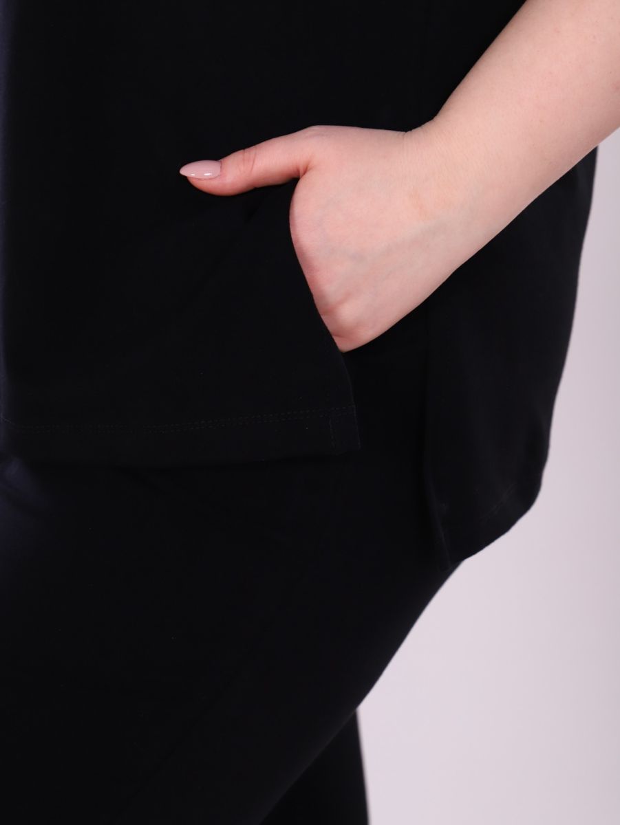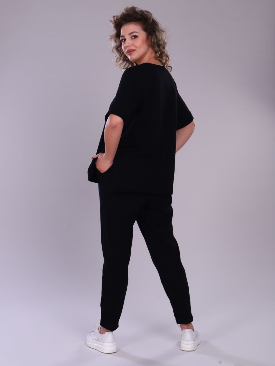 Классические черные брюки-джоггеры имеют зауженный к низу крой, с боковыми карманами для удобства. Удобный комплект идеально подойдет для повседневной жизни, домашних дел и прогулок.