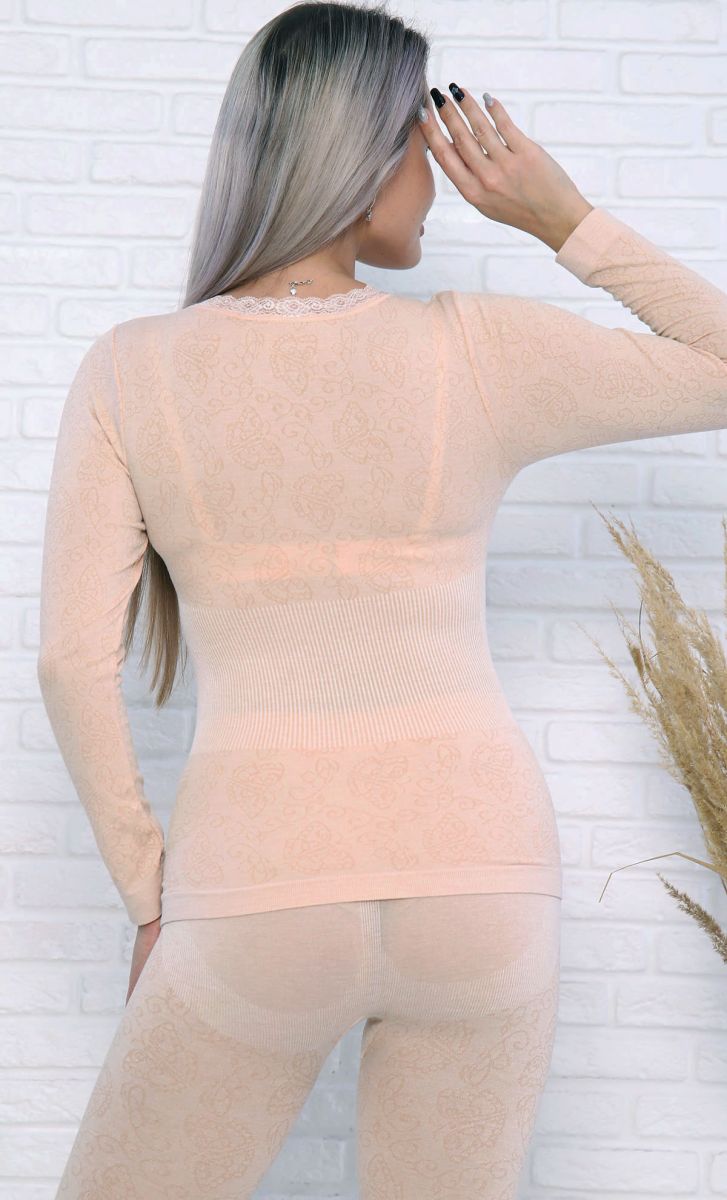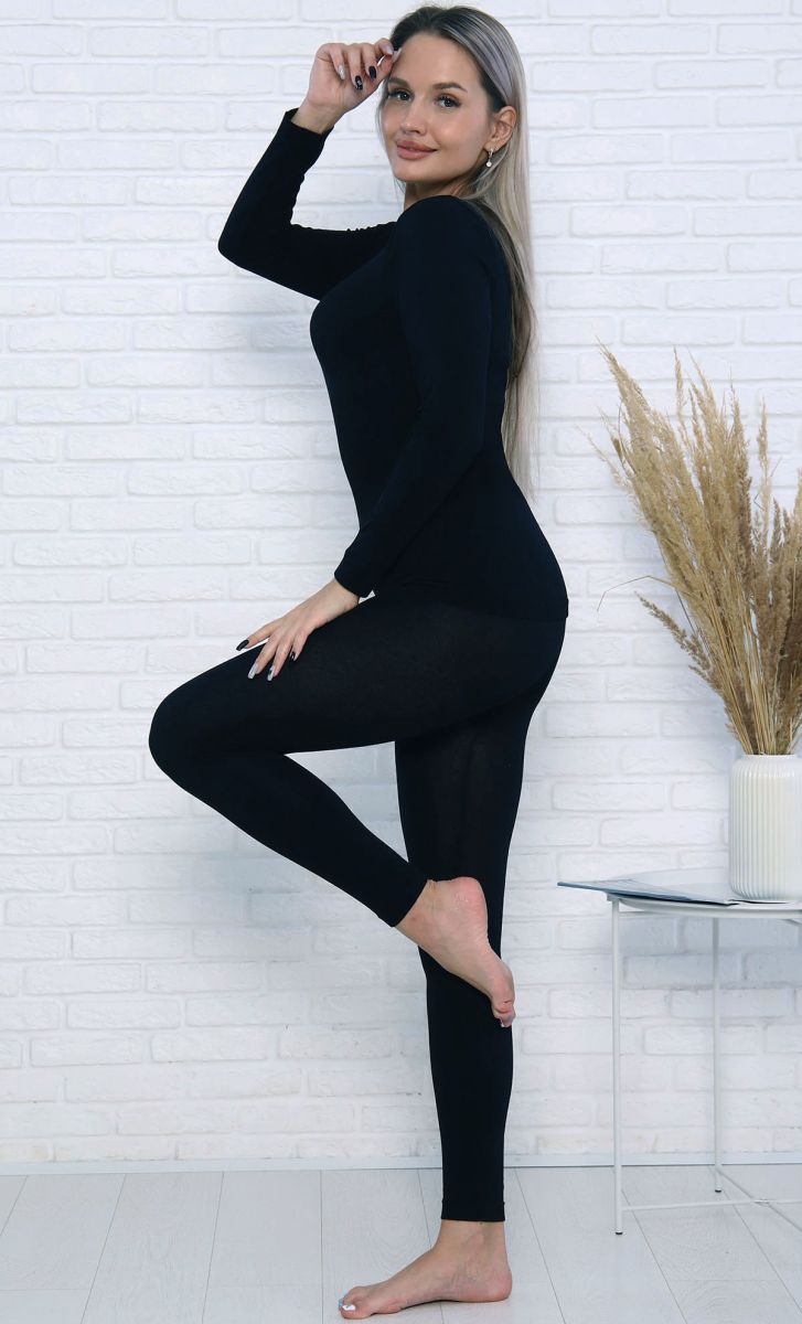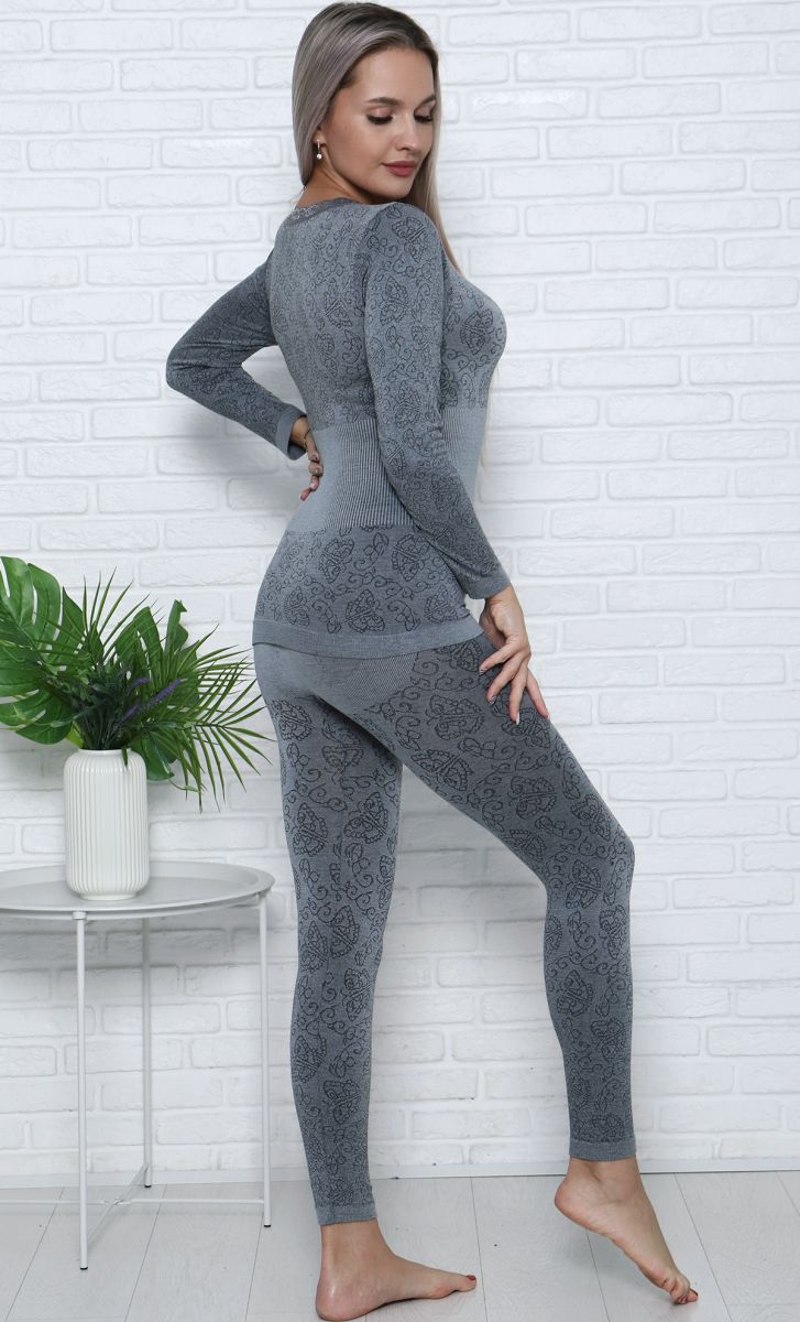 Термокомплект женский, состоящий из лонгслива и легинсов. Лонгслив с О-образной горловиной, длинным рукавом, до уровня бедер. Легинсы на резинке с высокой посадкой, без бокового шва, длиной до лодыжки. Термокостюм идеально подойдет для активного отдыха в холодное время года.