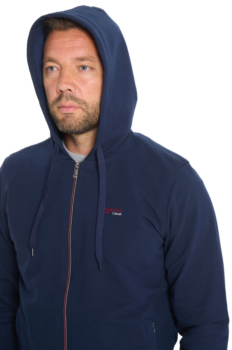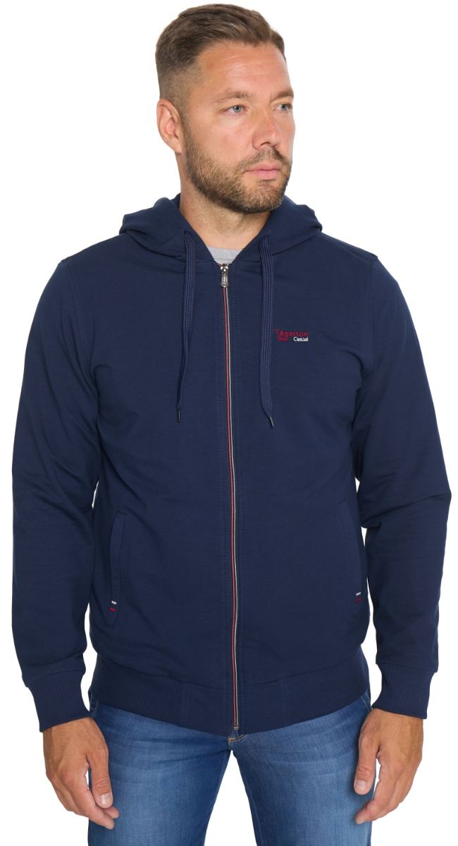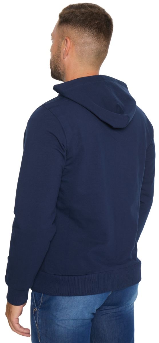 Мужская толстовка на молнии с капюшоном и поясом из кашкорсе. С внутренней стороны капюшон отделан кулиркой в тон основного материала. Ширина регулируется шнурком. Молния в борт декорирована цветными нитками. Передние карманы на молниях под листочками, украшенными закрепками. На левой стороне груди вышивка в фирменном стиле. Изделие удобное и практичное. Может использоваться как элемент спортивной экипировки во время занятий спортом или как трикотажная ветровка из набора повседневной одежды в формате стиля кэжуал. Прекрасно сочетается как с трикотажными спортивными брюками, так и с джинсами.