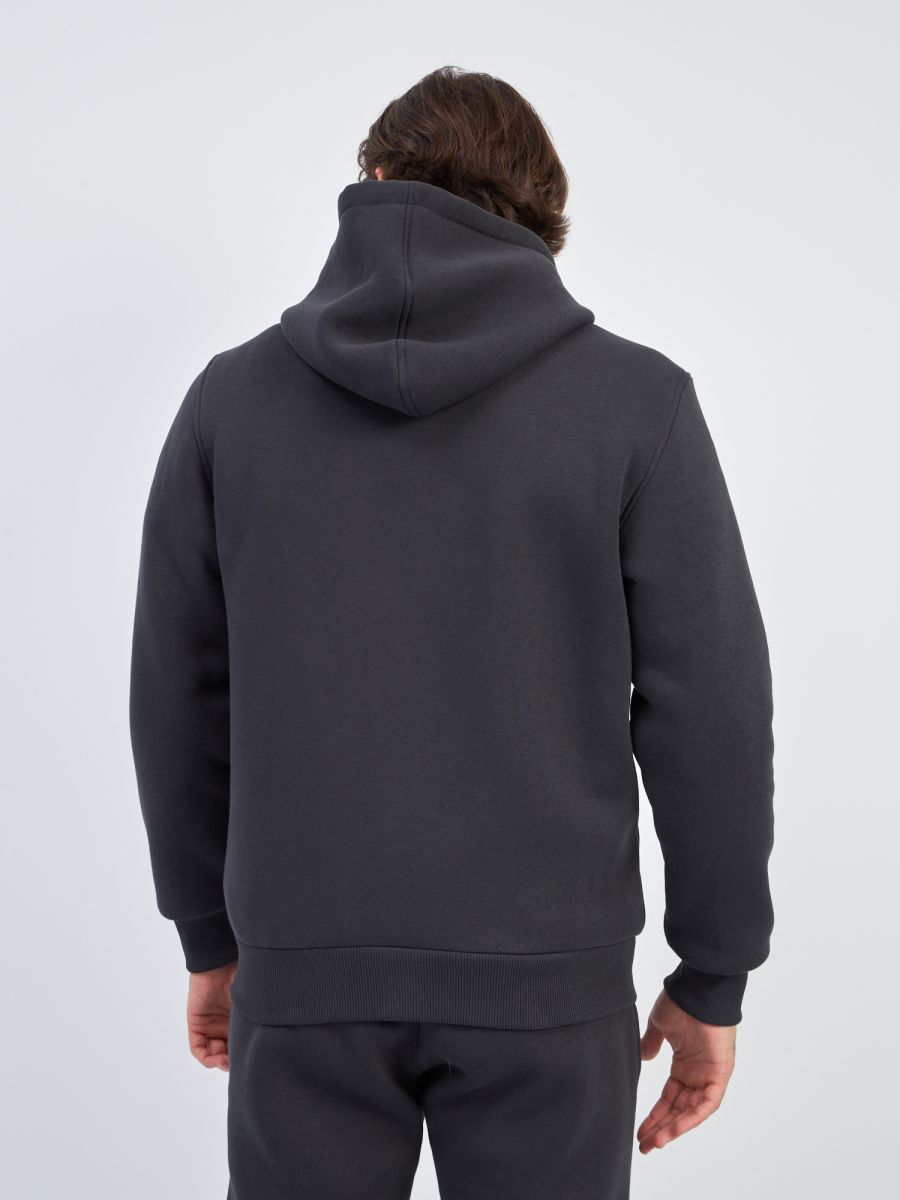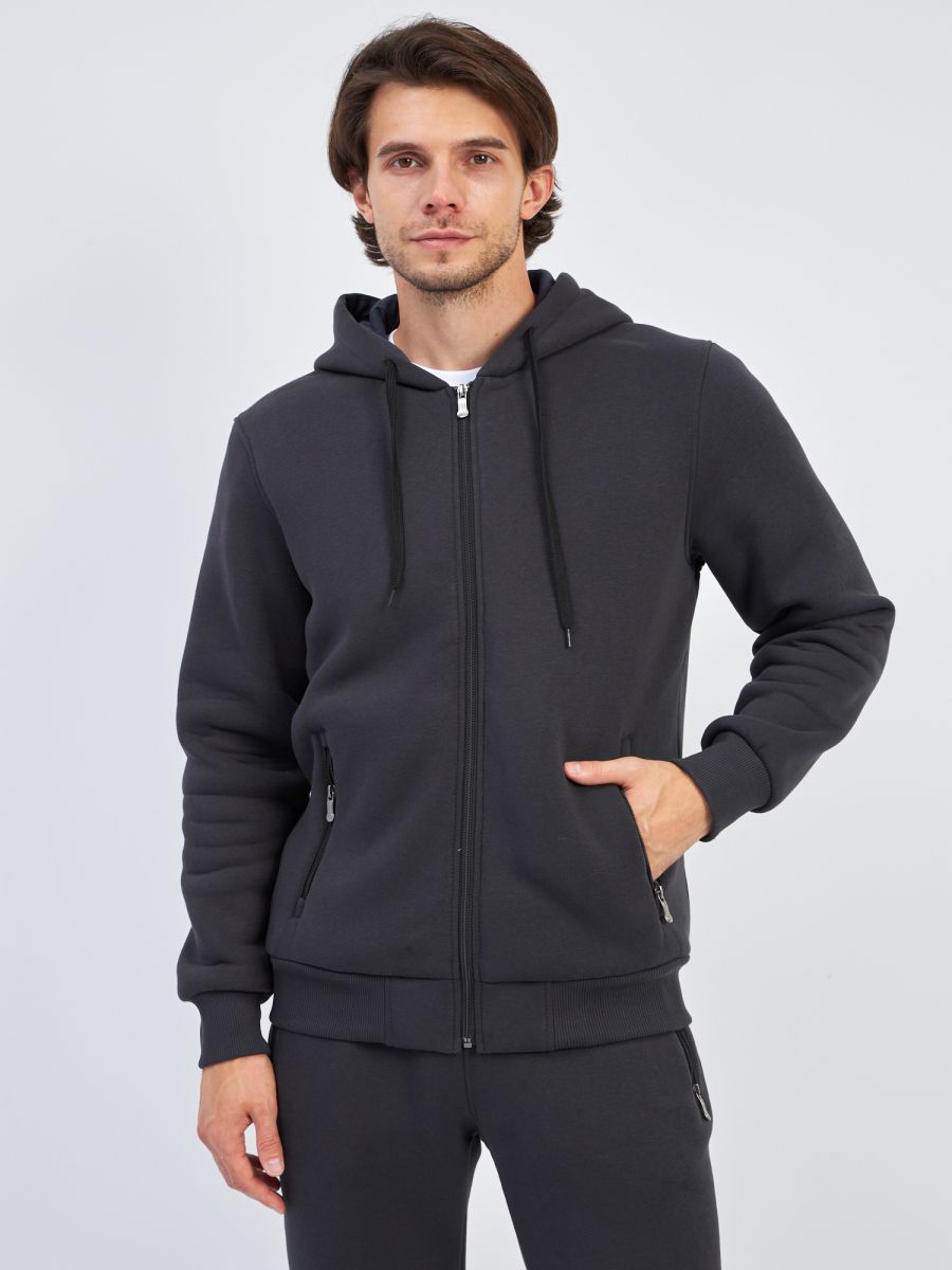 Утеплённая спортивная трикотажная толстовка. Начёс с внутренней стороны полотна обеспечивает прекрасную защиту от холода. Толстовка с поясом из кашкорсе и капюшоном, ширина которого регулируется шнурком. Передние карманы фиксируются молниями. Изделие удобное и практичное. Может использоваться как спортивная экипировка для занятий спортом на открытом воздухе в холодный день, так и для повседневного использования всеми, кто ценит комфорт.