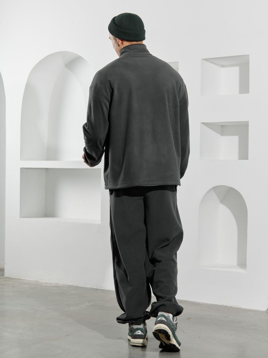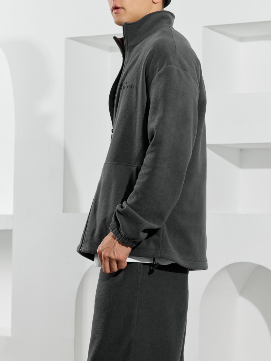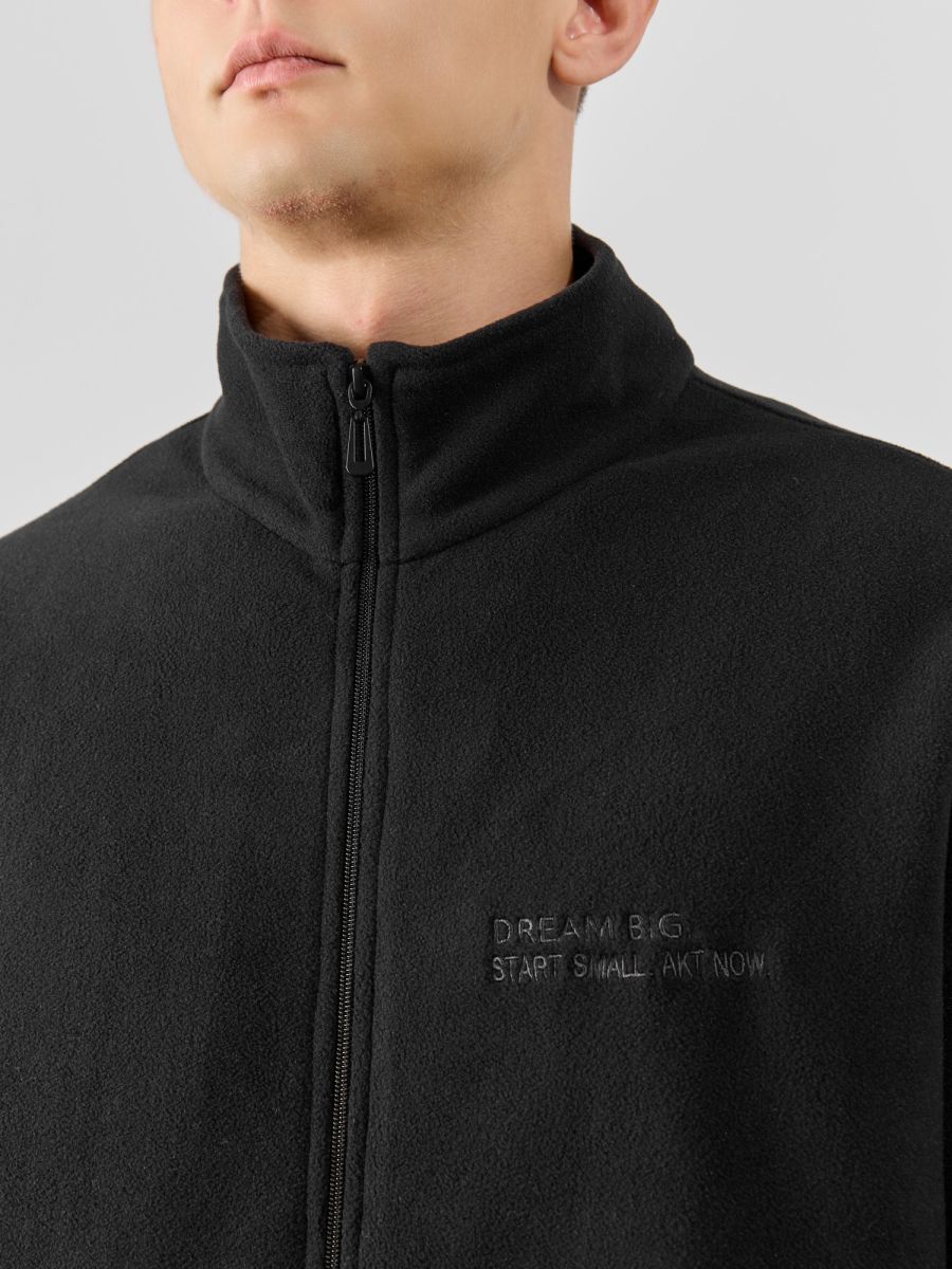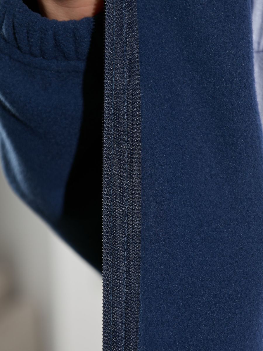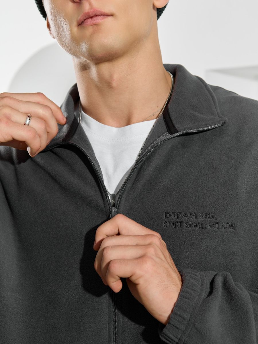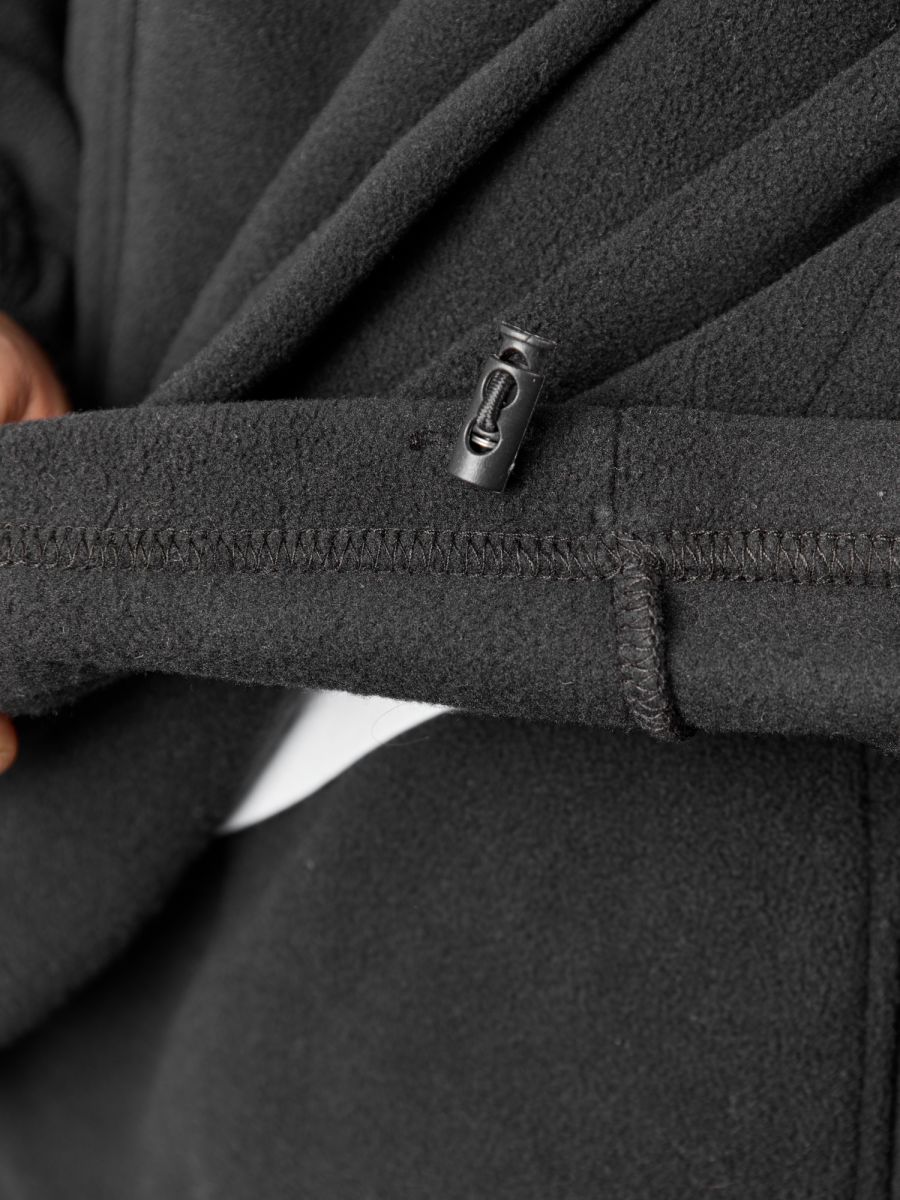 Куртка-толстовка мужская из флиса, с длинными втачными рукавами, воротником-стойкой и центральной бортовой застежкой на тесьму "молния". На полочках -кокетки и накладные карманы с вертикальными входами, на левой полочке в области груди - вышивка. Нижние срезы рукавов обработаны подгибкой с эластичной тесьмой, а низ изделия - с вложением в шов шляпной резинки с фиксаторами для регулирования степени прилегания изделия по бедрам.