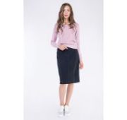 Топ прилегающего силуэта. Полочка длинее спинки. Фигурный низ изделия. На полочке и спинке вертикальные рельефы, подрез под грудью. Срезы горловины, проймы и низа окантованы.