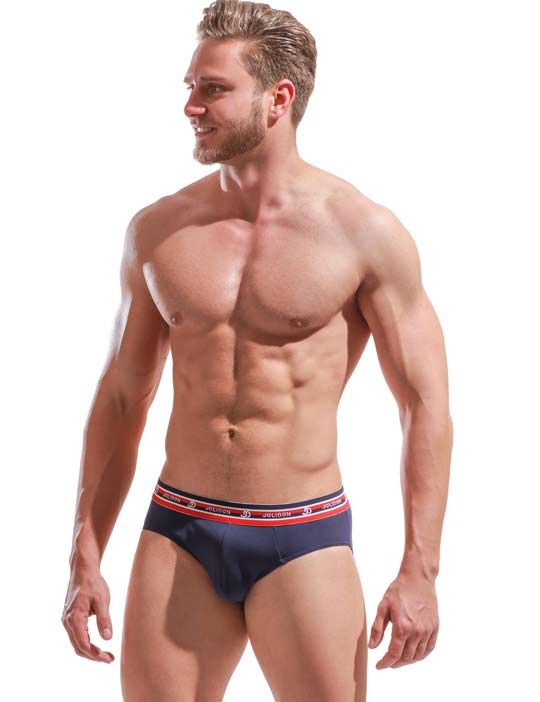 Трусы-слип мужские, декорированы широкой резинкой в спортивном стиле.