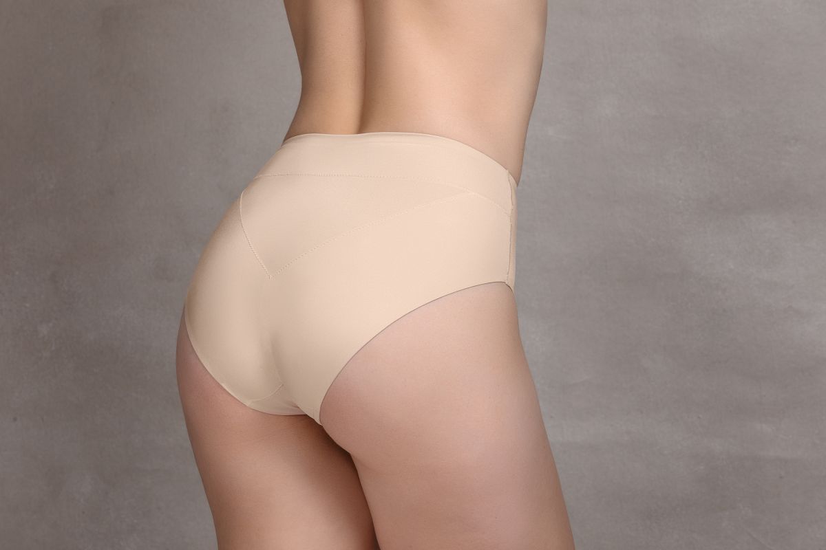 Трусы-слип с высокой линией талии, передняя деталь дублирована сеткой, дающей легкий моделирующий эффект. Задняя деталь по линии открытия ноги двухслойная, со скрытой мягкой плоской резинкой, необходимой для оптимального прилегания. Выполнены из микрофибры. Высота бочка 11,5 см. Коллекция "Adele".
