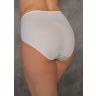 Трусы из эластичного принтованного полотна, эластичного кружева, х/б ластовица, с высокой линией талии. Отделка эластичной декоративной тесьмой.
