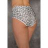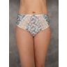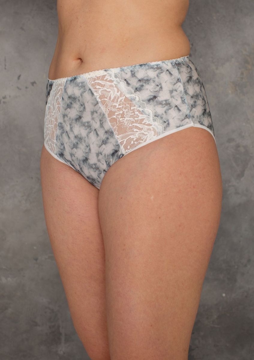 Трусы из эластичного принтованного полотна, эластичного кружева, х/б ластовица, с высокой линией талии. Отделка эластичной декоративной тесьмой.
