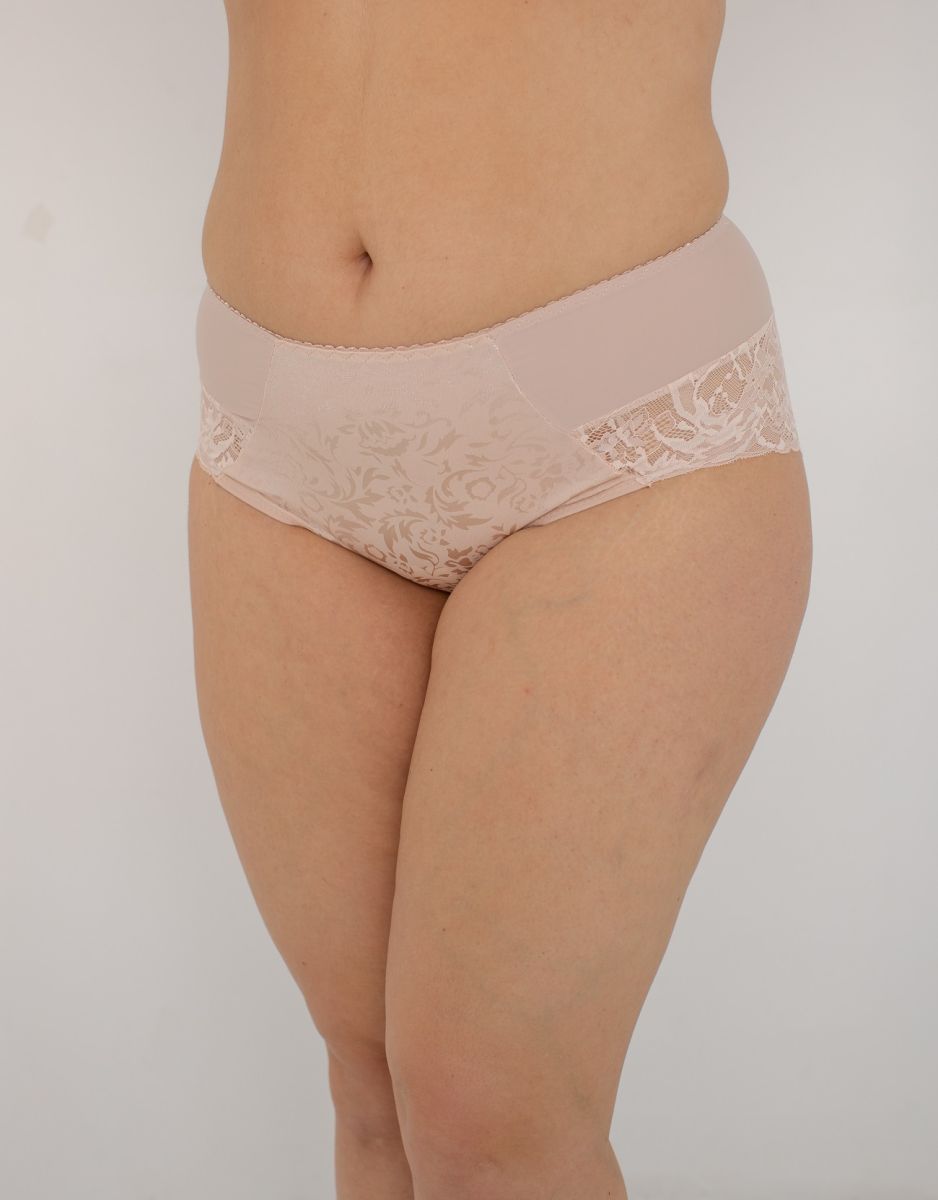 Трусы с высокой посадкой, выполнены из микрофибры и кружева. Крой трусов позволяет создать красивый силуэт, мягко утягивая животик.