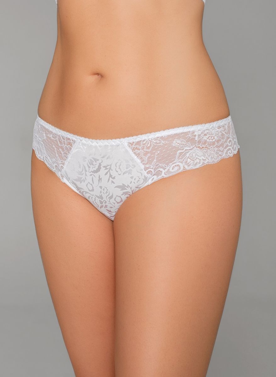 Трусы-стринги из эластичного принтованного полотна и эластичного кружева.