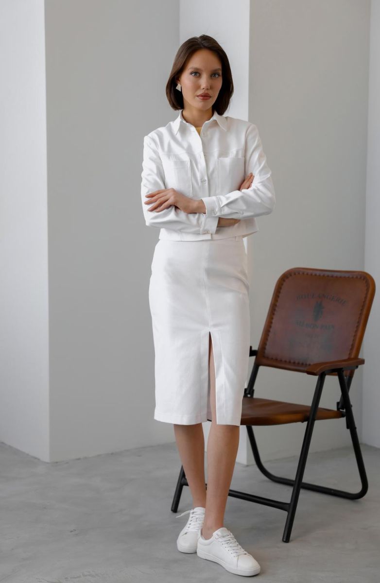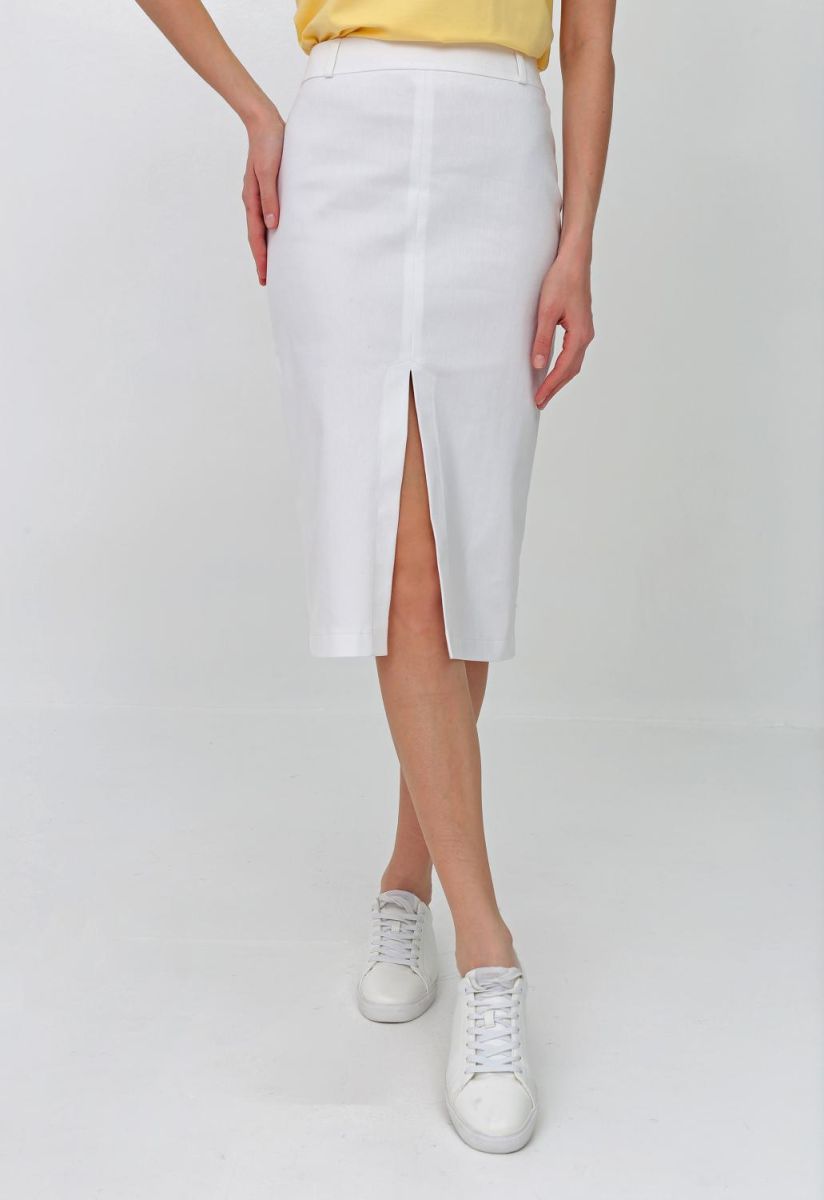 Юбка миди готова стать самым любимым элементом гардероба: от спортивного стиля до кэжуал. Чтобы юбка длиной ниже колена не сковывала шаг, спереди предусмотрели разрез.
