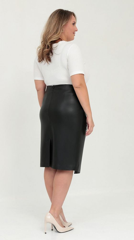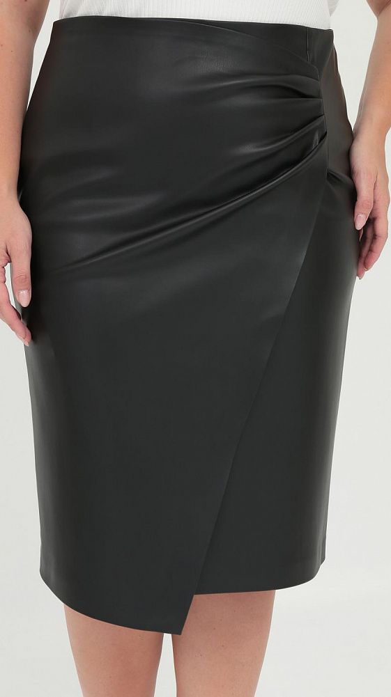 Элегантная юбка из экокожи. Модель зауженного кроя. По переду эффектная сборка. Сзади застежка на потайную молнию. Для удобной носки предусмотрена шлица. Изделие на подкладке.