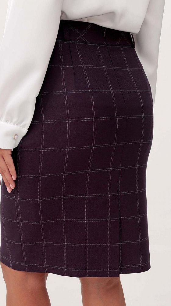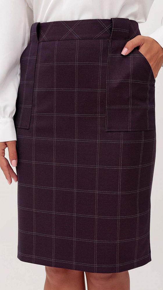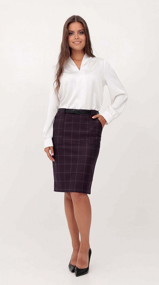 Юбка, классического стиля. Изделие на поясе. Застежка - молния сзади. По переду функциональные карманы. Для удобной носки предусмотрена шлица. Изделие на подкладке. Юбка длиной чуть выше колена. Ремень в комплект не входит.