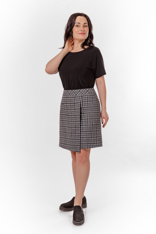 Юбка с запахом. В центральном шве заднего полотнища потайная застёжка.