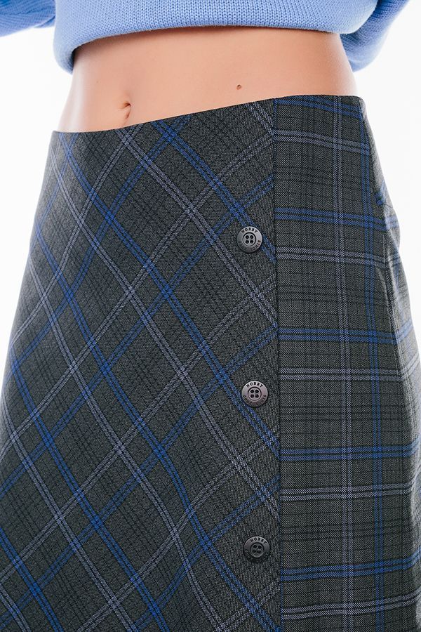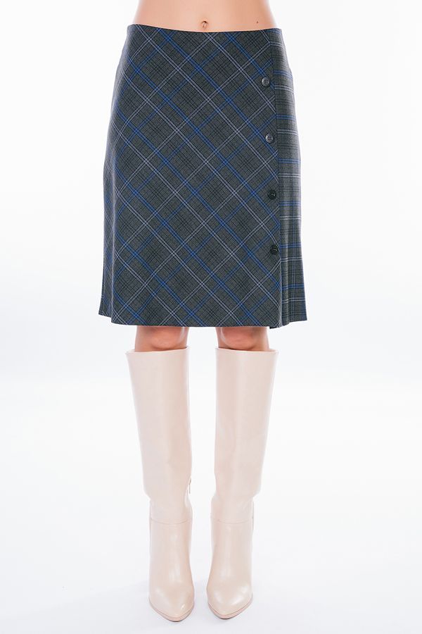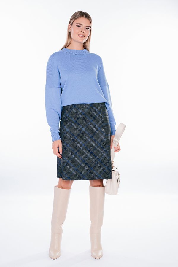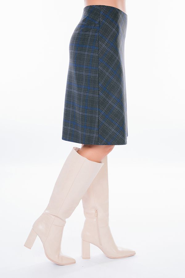 Юбка А-образного силуэта из благородной клетки. По передней половинке разрез, четыре пуговицы. Сзади кокетка, в среднем шве потайная молния. Юбка на подкладе. Длина изделия: 56 см. Размер модели на фото: 44. Параметры модели: 86-63-94. Рост модели на фото: 173 см.